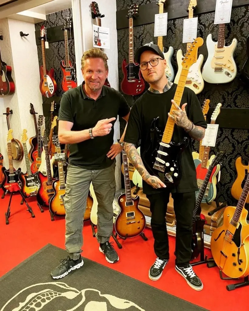 Unser „Kumpelkunde“ Danskimo von den Electric Callboys. Auch er schont nun die Umwelt mit einer gebrauchten Gitarre aus unserem Hause.