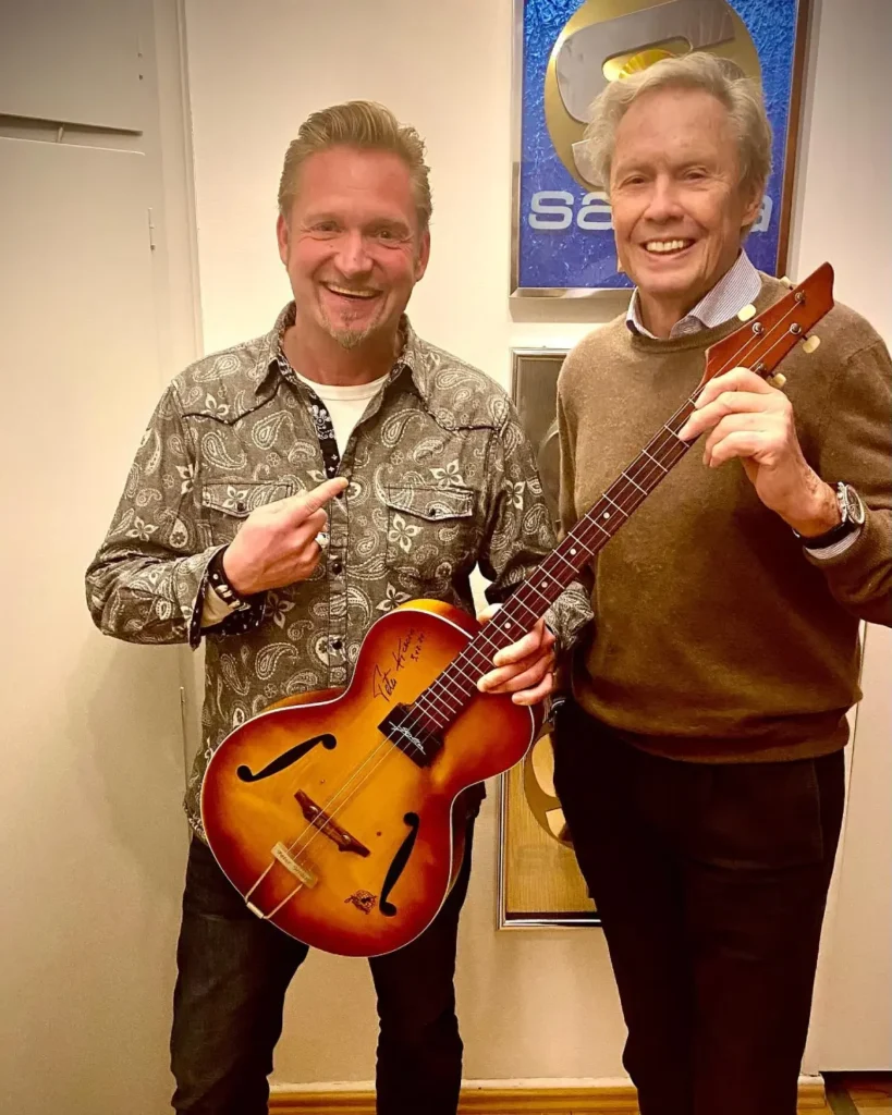2 Framus Peter Kraus Gitarren aus den 1950er Jahren signieren lassen..