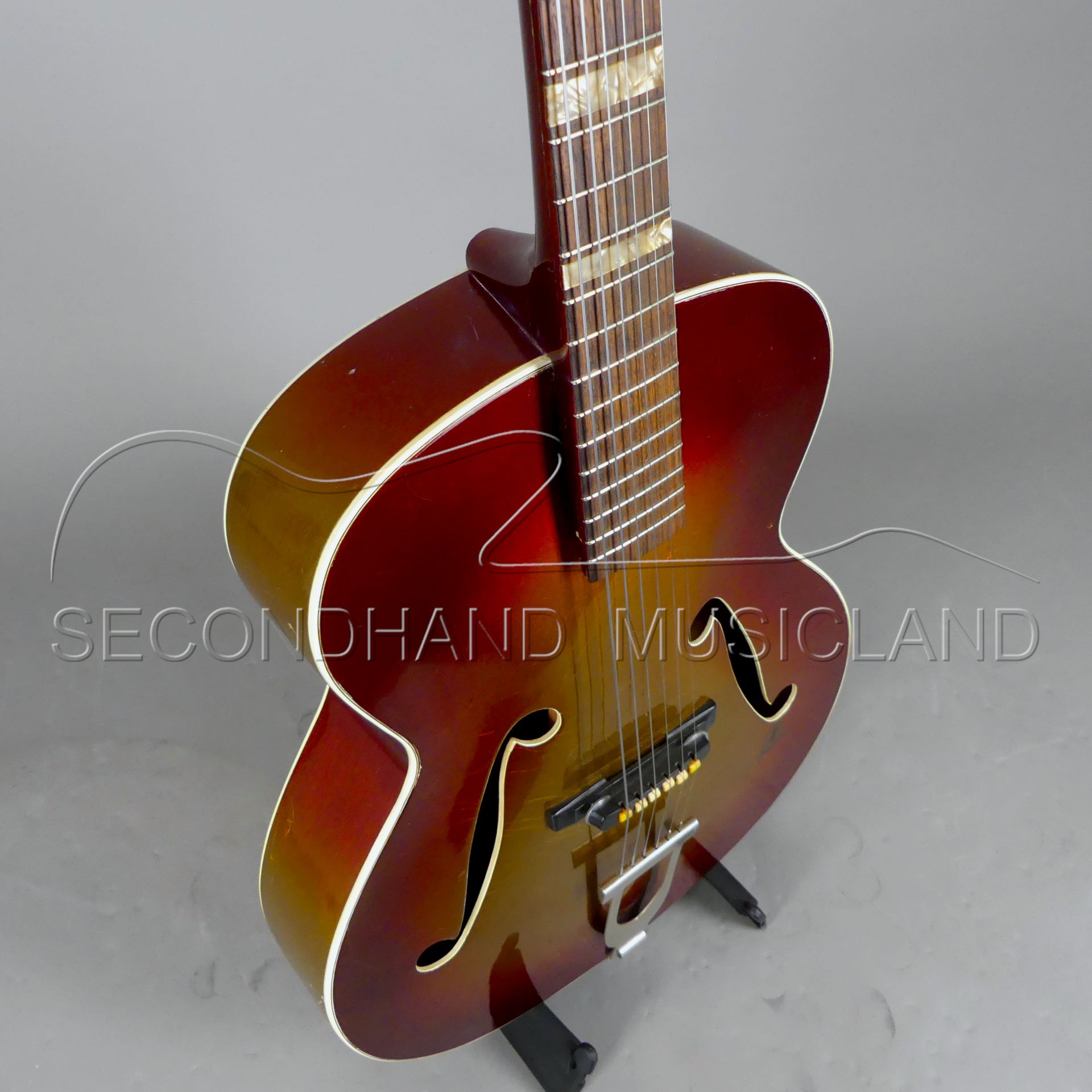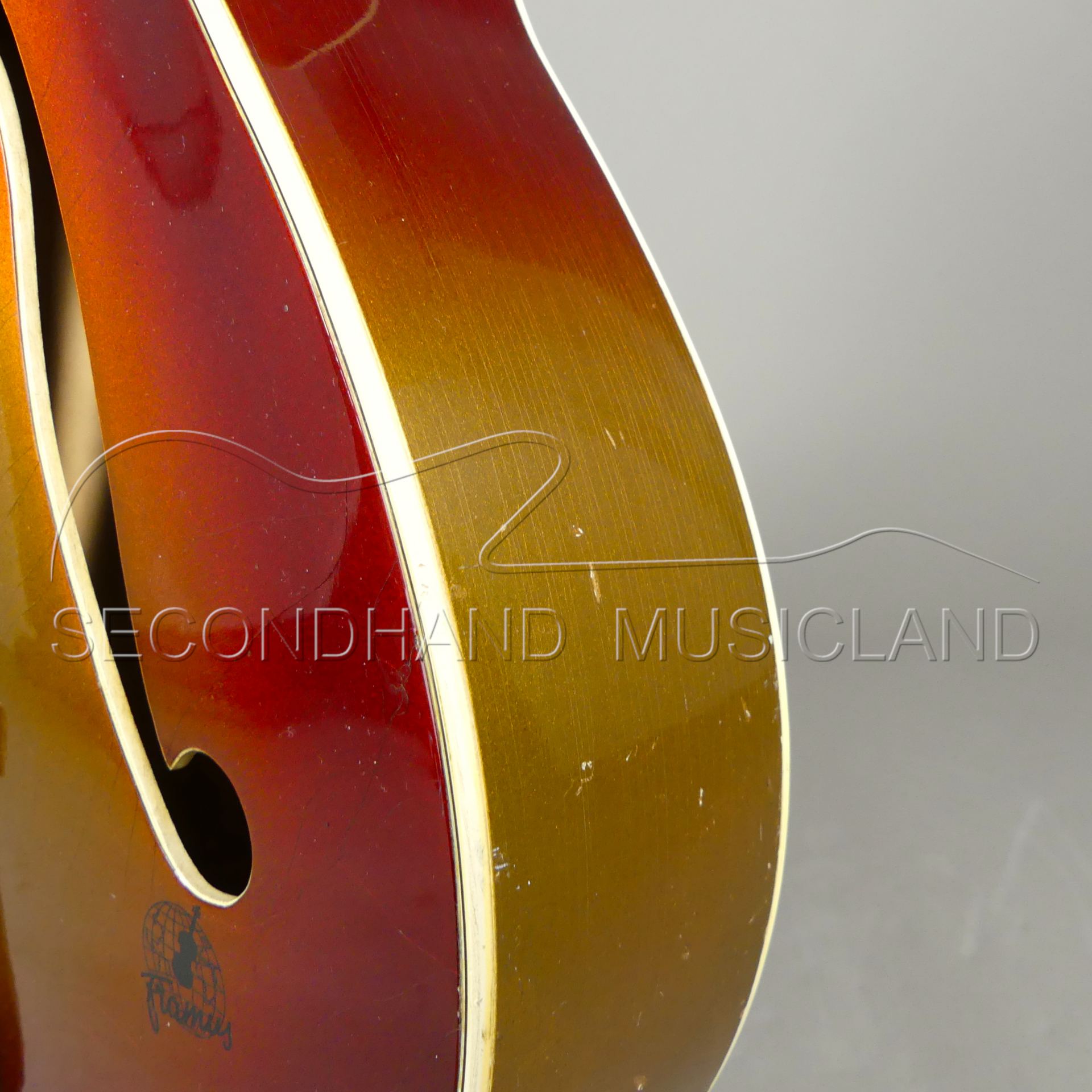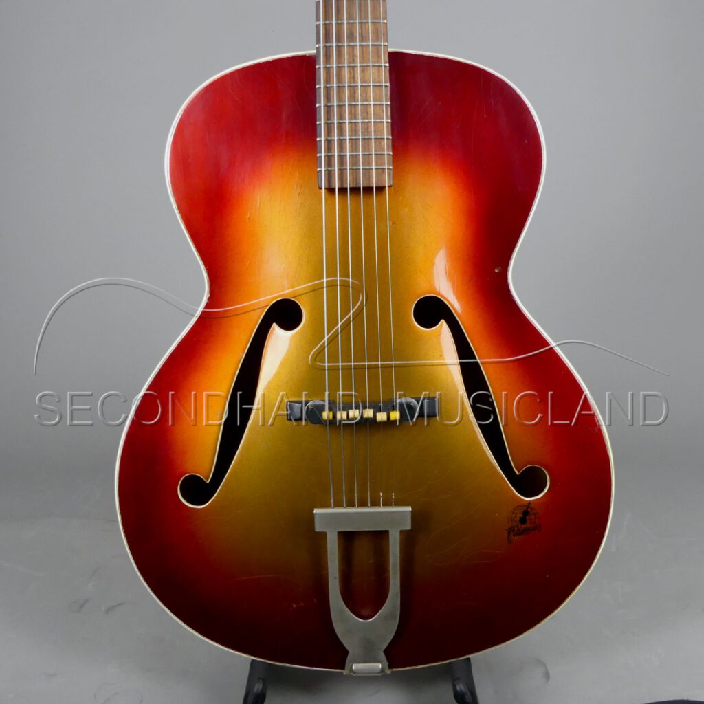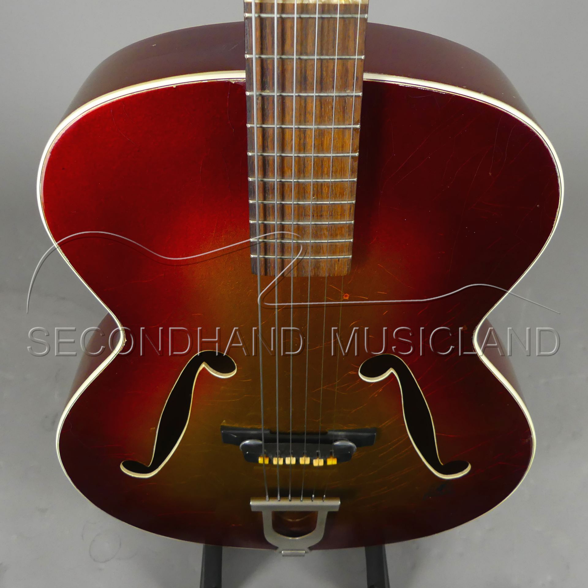 Hier eine wunderschöne und gut erhaltene Framus „Schlaggitarre“ in der originalen Sonderfarbe/Showlackierung rot/gold metallic!