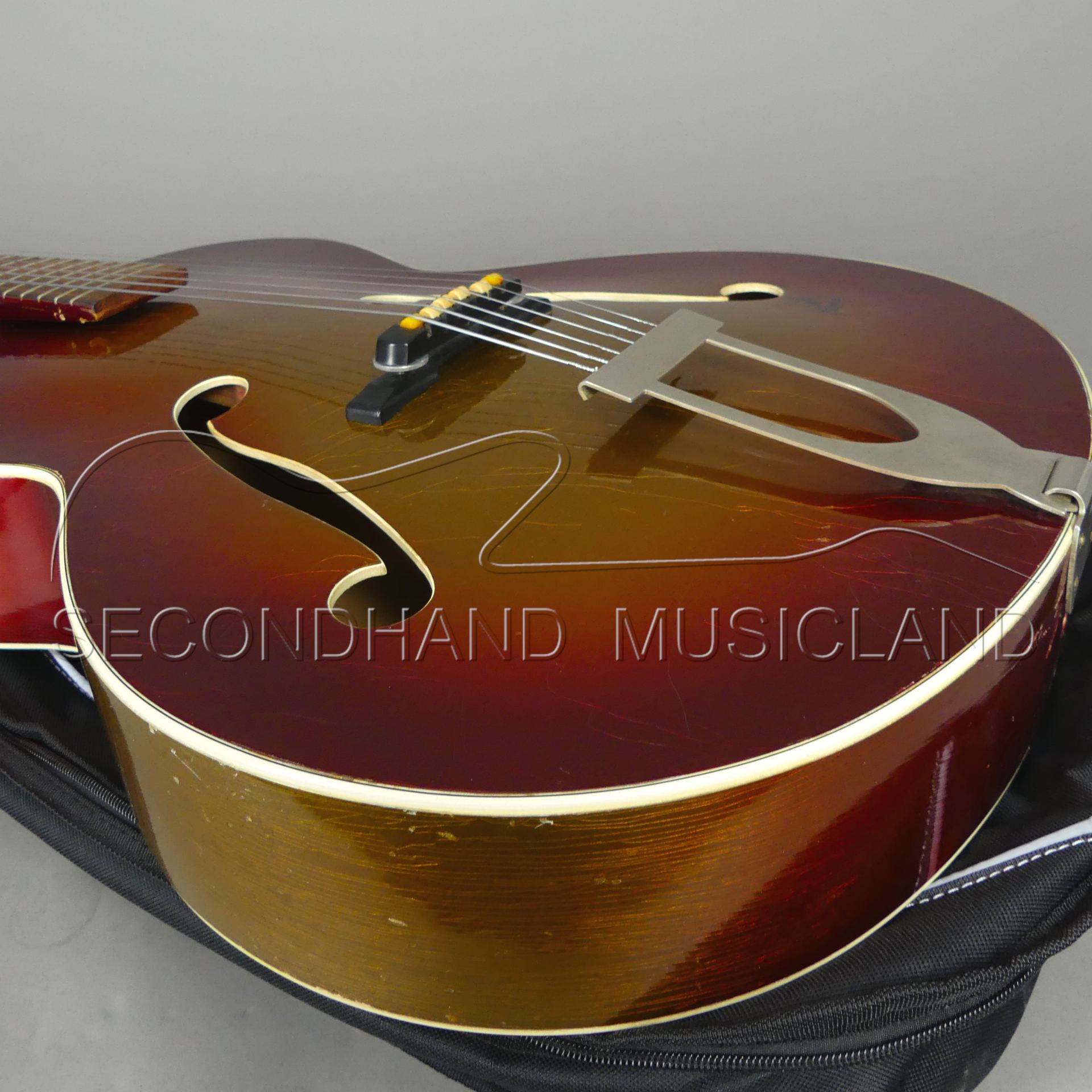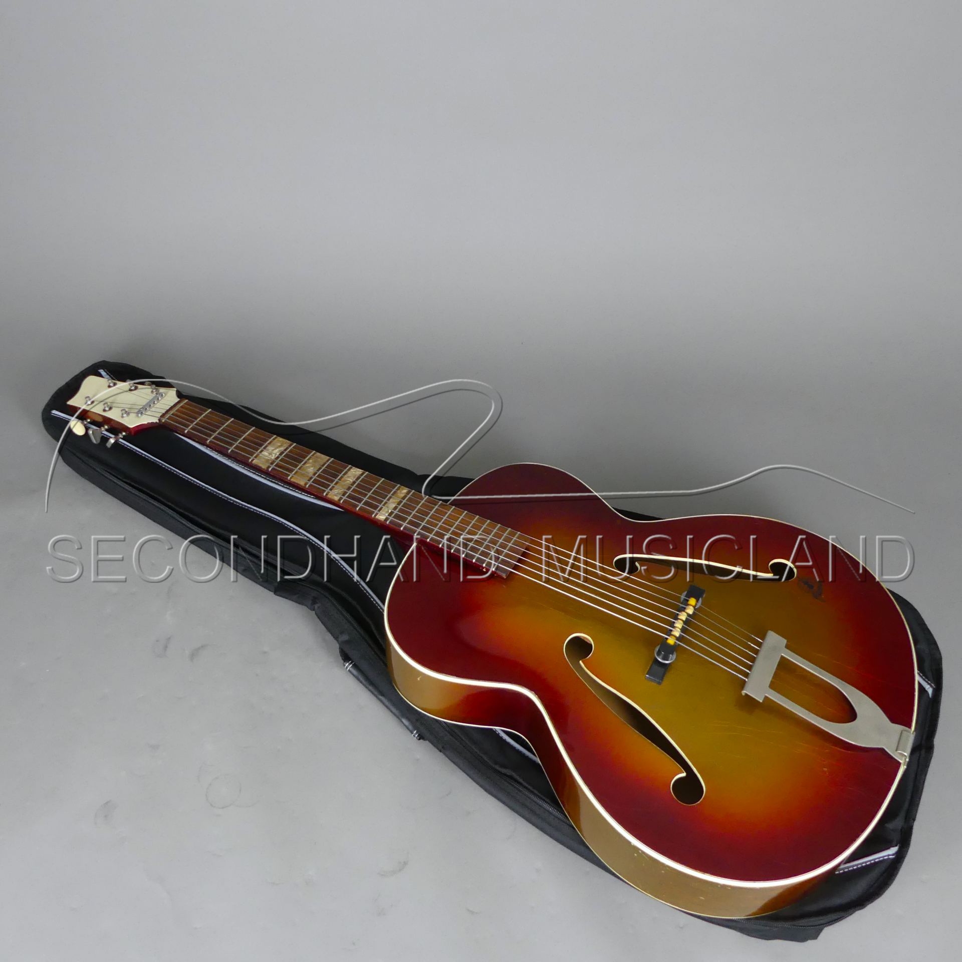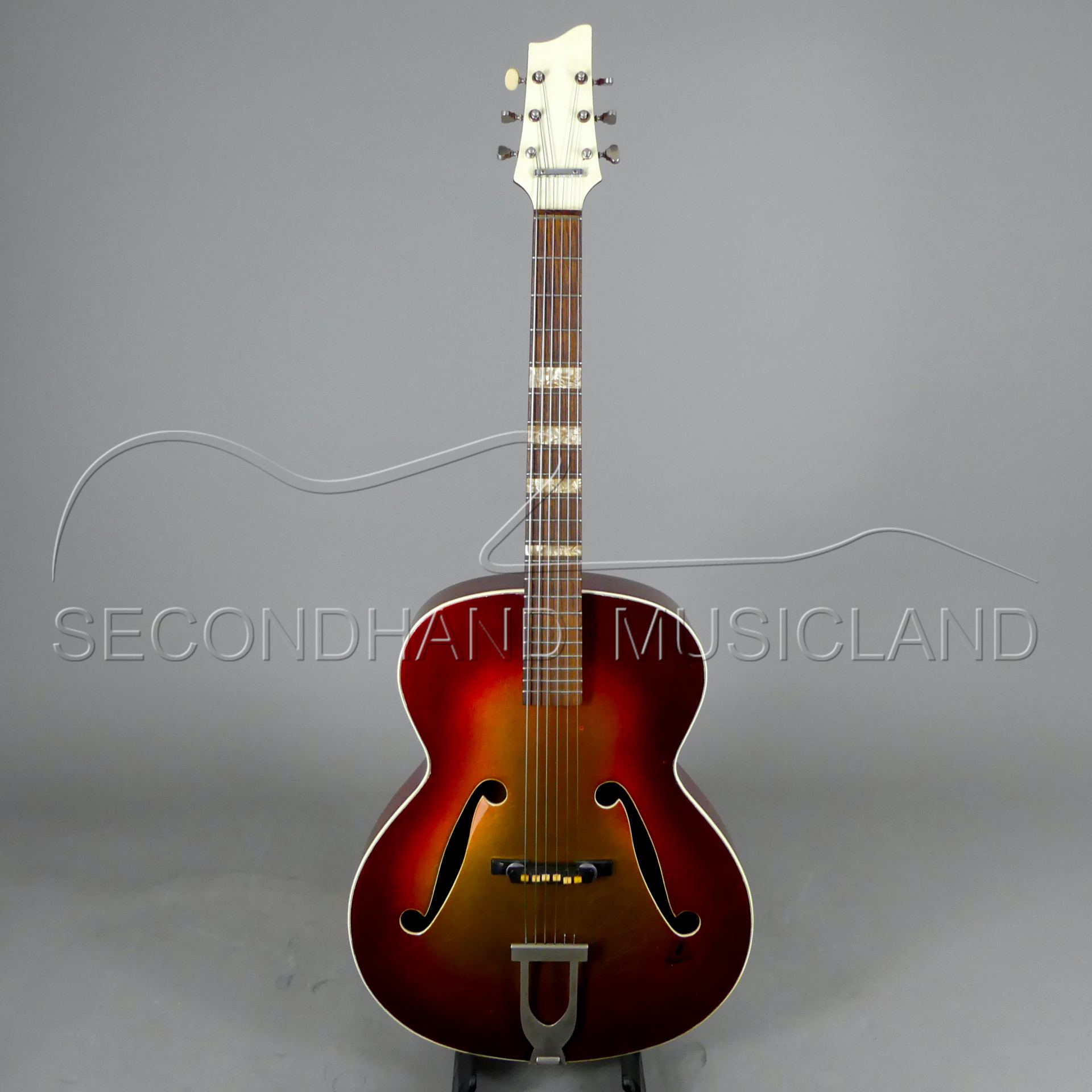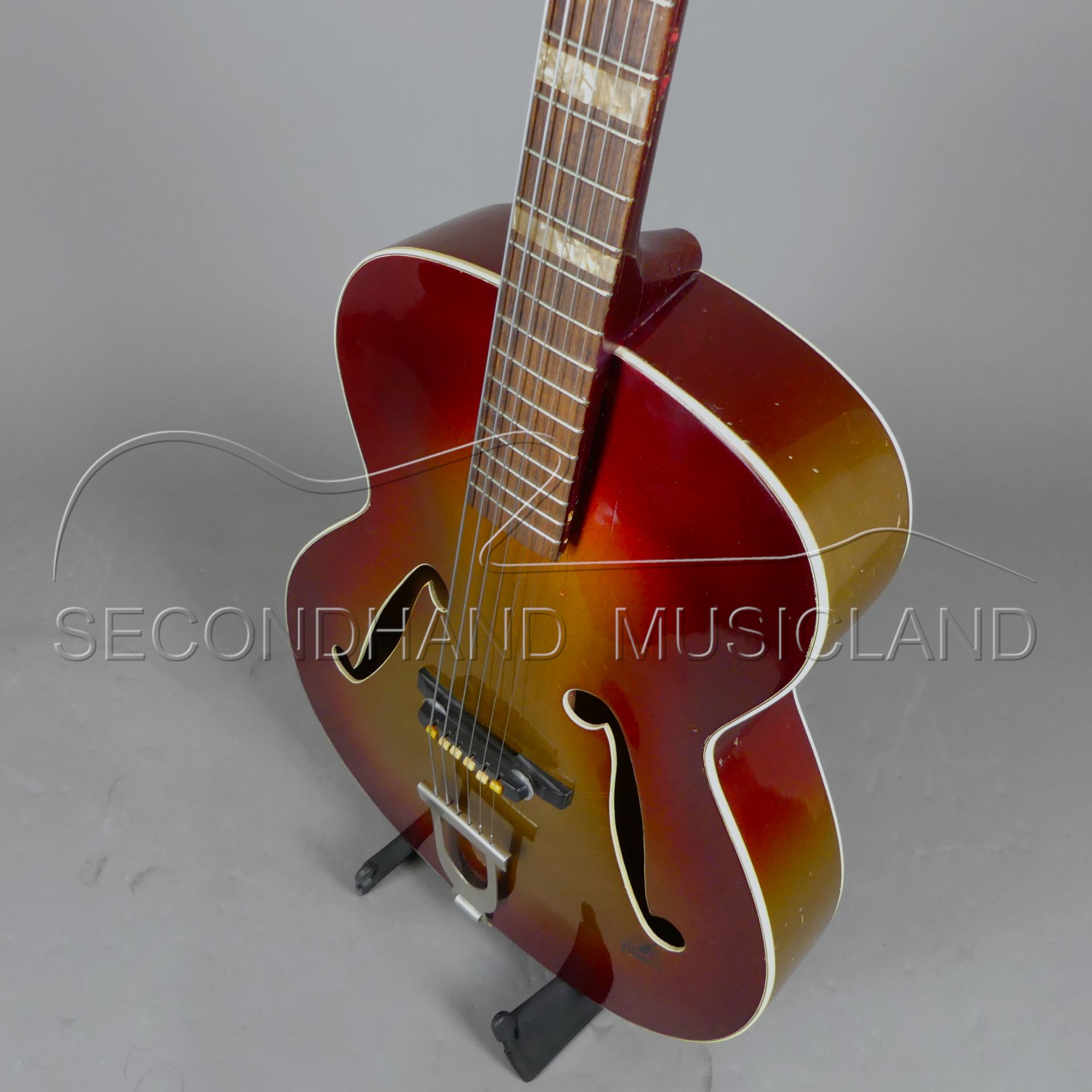 Hier eine wunderschöne und gut erhaltene Framus „Schlaggitarre“ in der originalen Sonderfarbe/Showlackierung rot/gold metallic!
