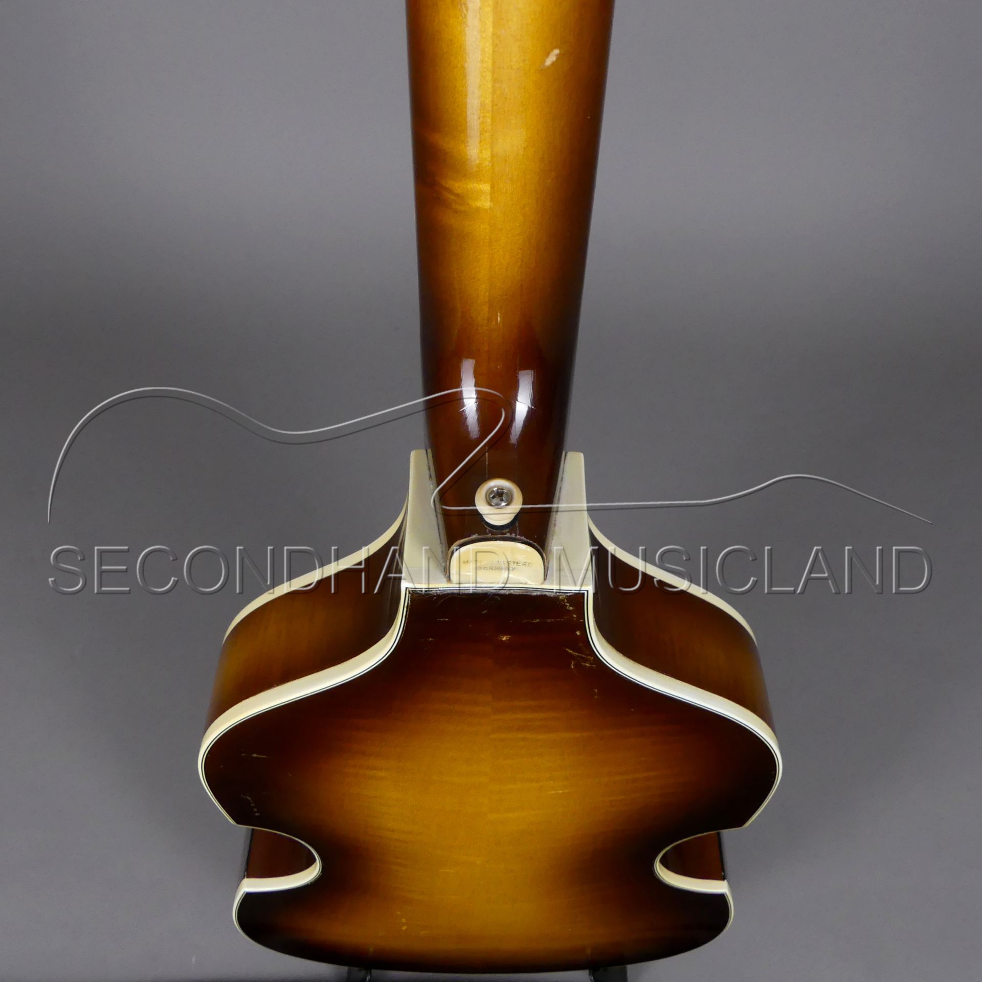 Um dieses alte Stück Beatgeschichte bühnentauglich zu erhalten, wurde hier ein neckreset vorgenommen. Soeben aus der Fachwerkstatt von Danies Schippers DSG custom guitars abgeholt..