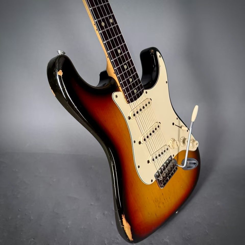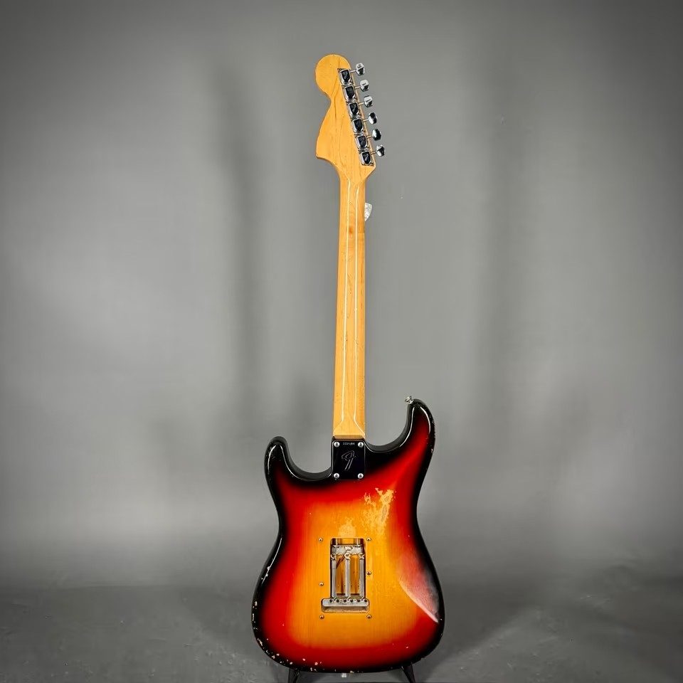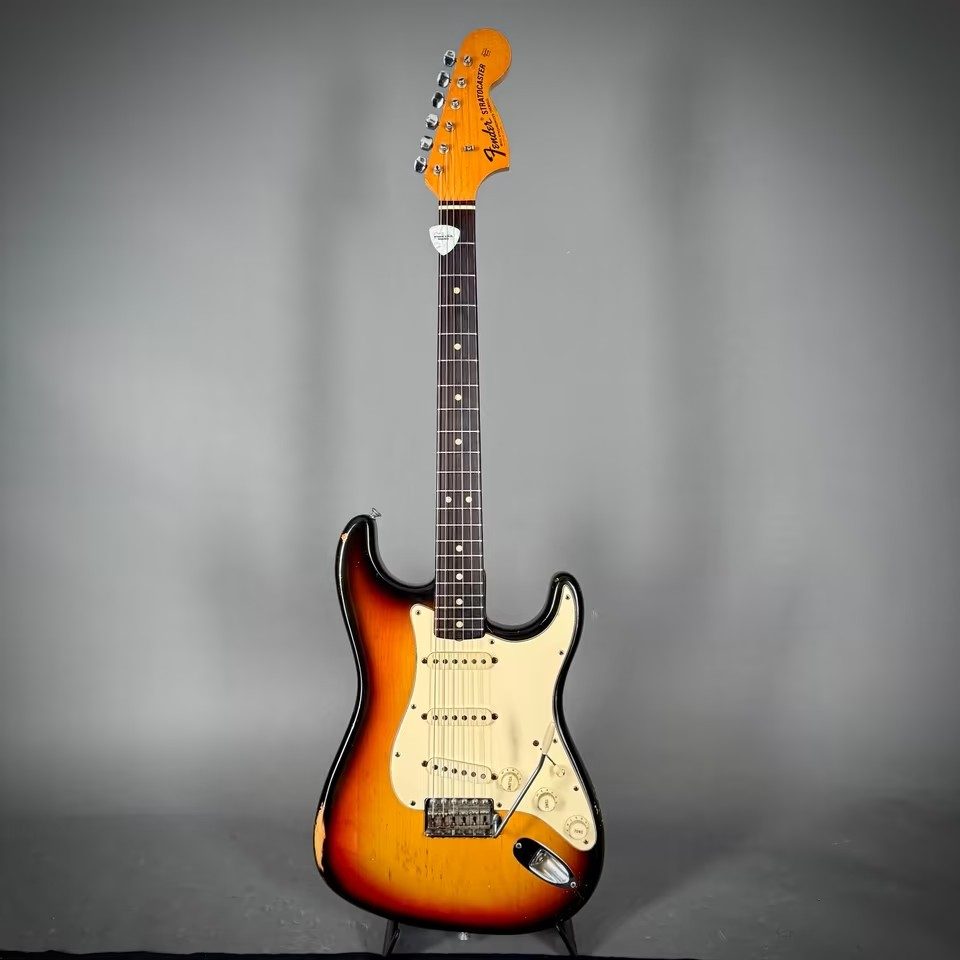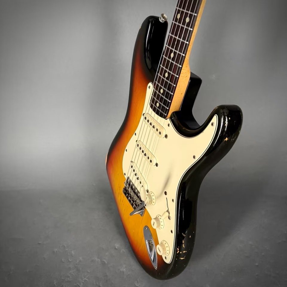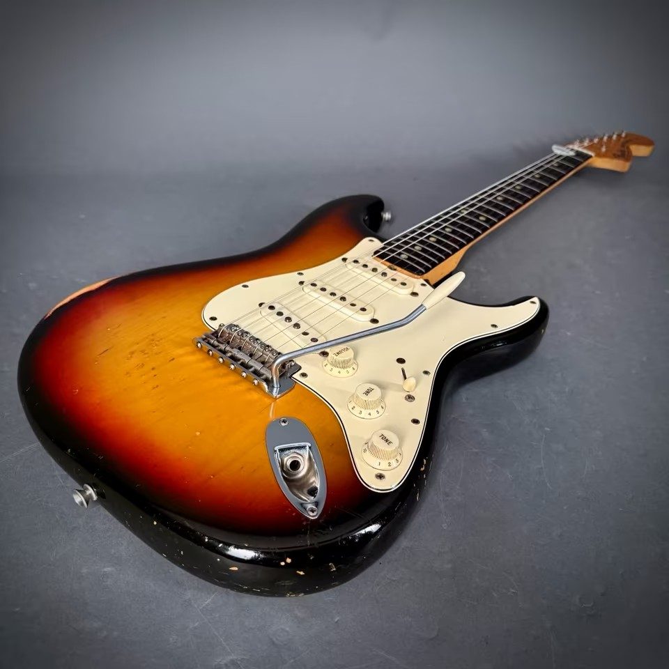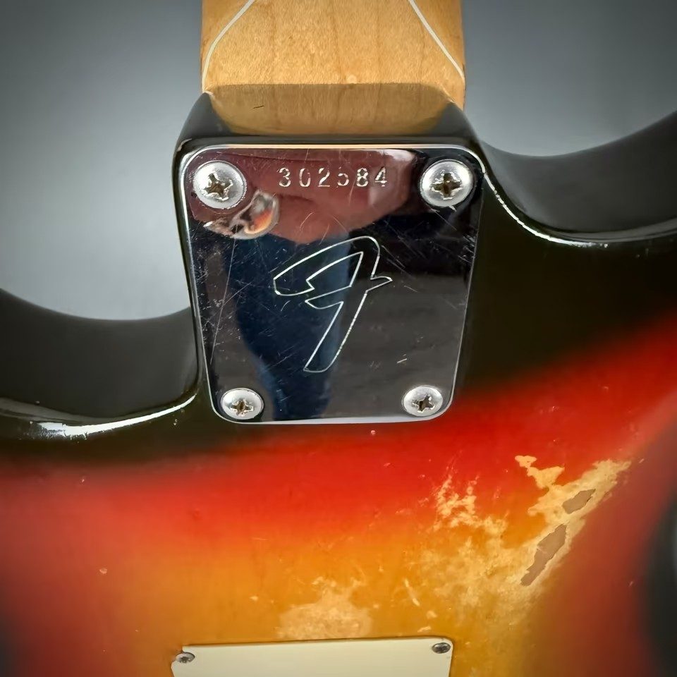 Hier eine absolut originale Fender Stratocaster mit nur 3,190kg, 4 Punkt aus Erstbesitz, inklusive des alten Koffers (kein Fender)…