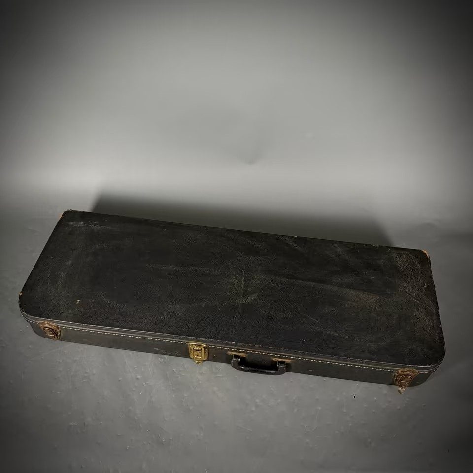 Die Gitarre kommt im ebenfalls altem Koffer (kein Fender)