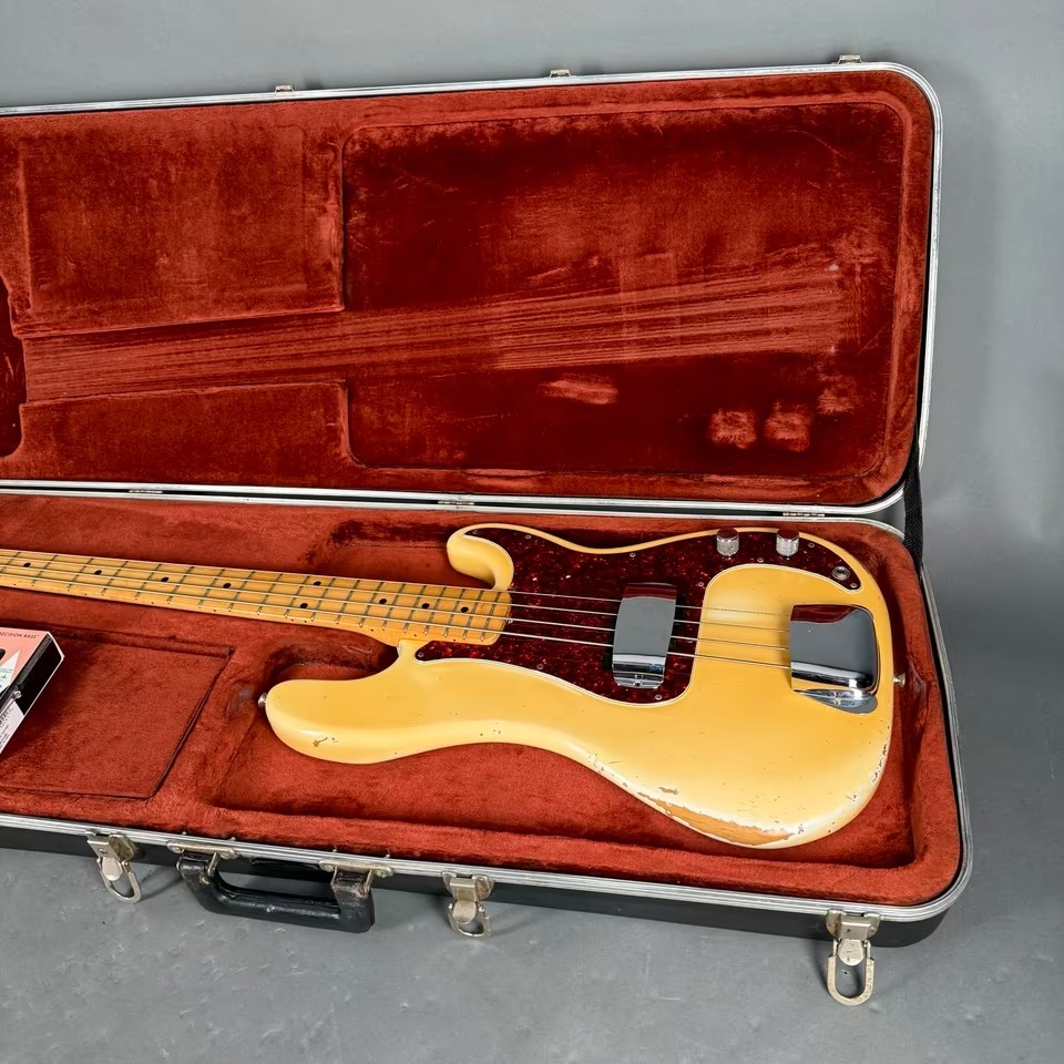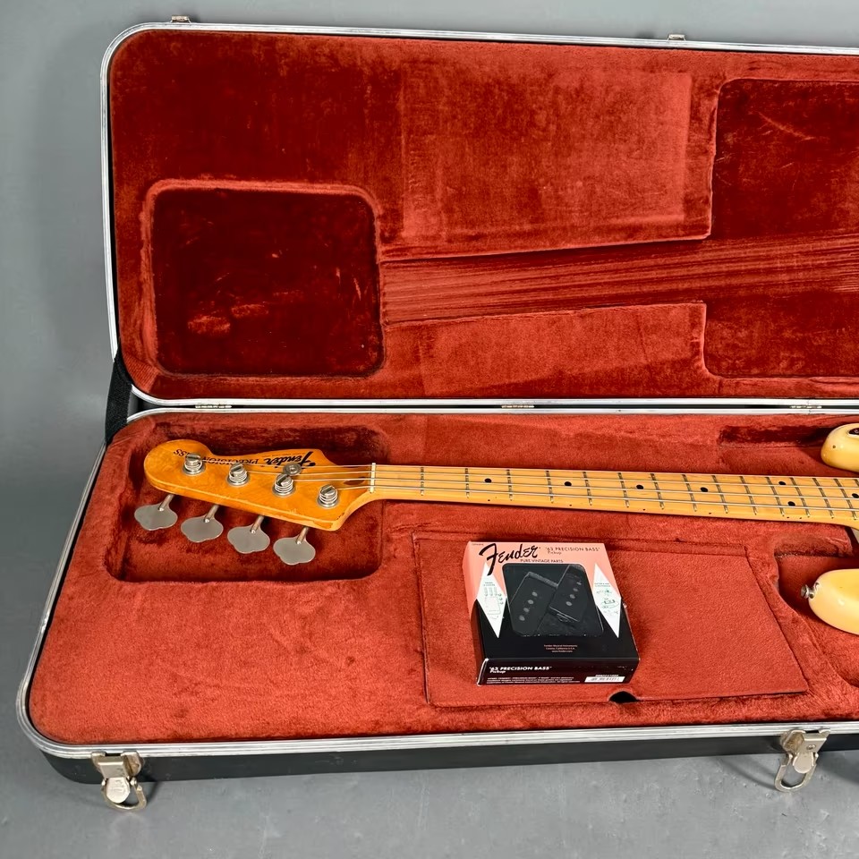 Der Bass kommt in einem 70s Fender Hardcase, inkl. der original Tonabnehmer!