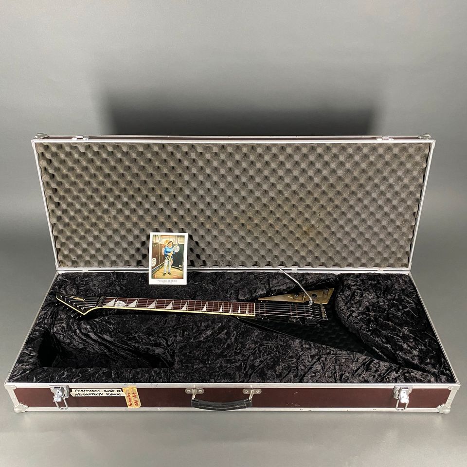 „Baujahr: 1986. Herkunftsland: Japan Seriennummer: von aussen nicht lesbar. Eine extreme Metal-Axt. Die Pickups haben sehr viel Output (Metallica lässt …“ So hat Rod die Gitarre auf seiner website rodarmy.com beschrieben..