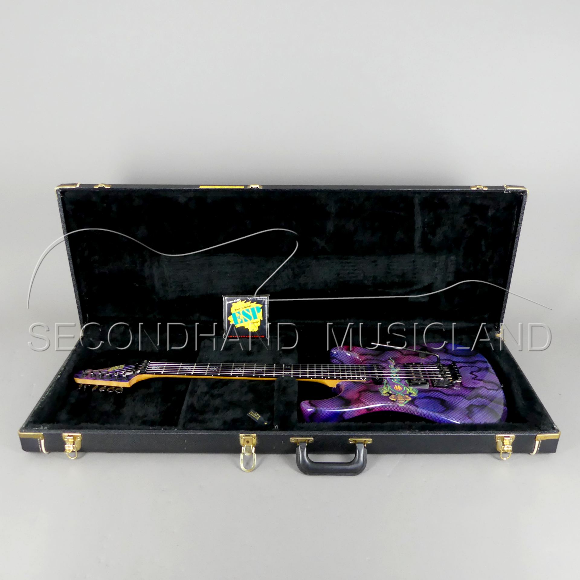 Die Gitarre ist technisch in sehr guten und spielbarem Zustand, kommt in Axels original ESP Koffer mit original Gurt!