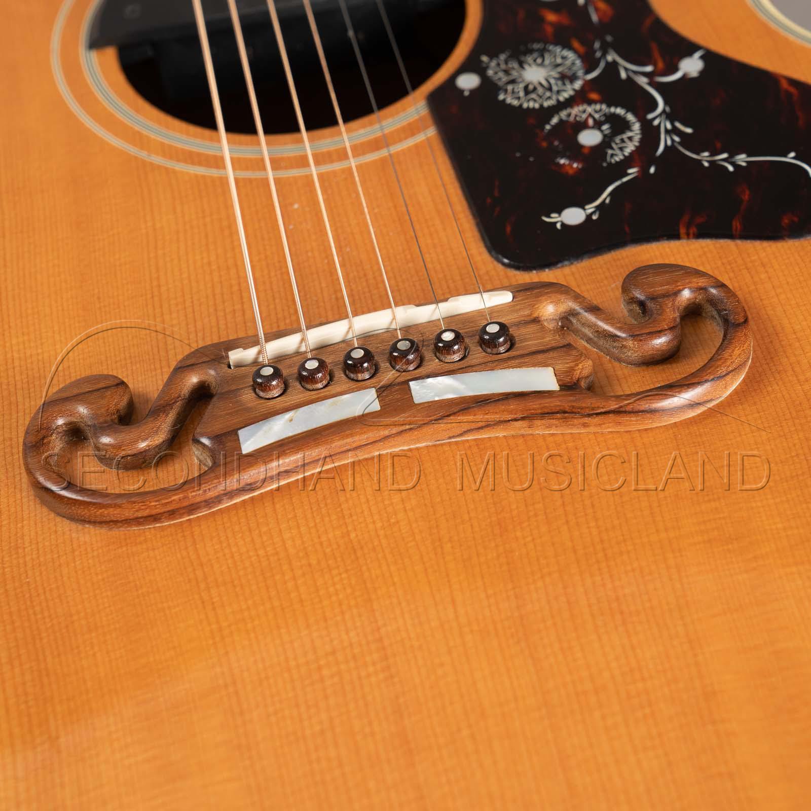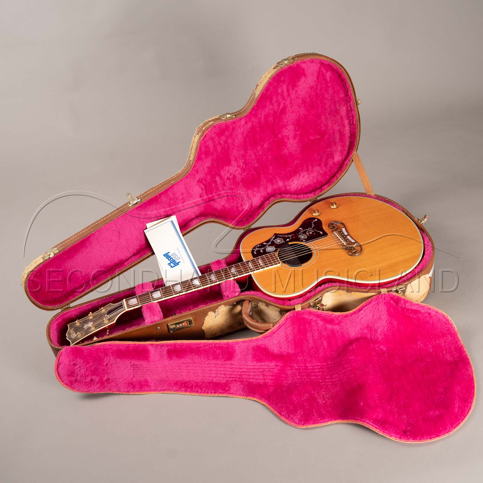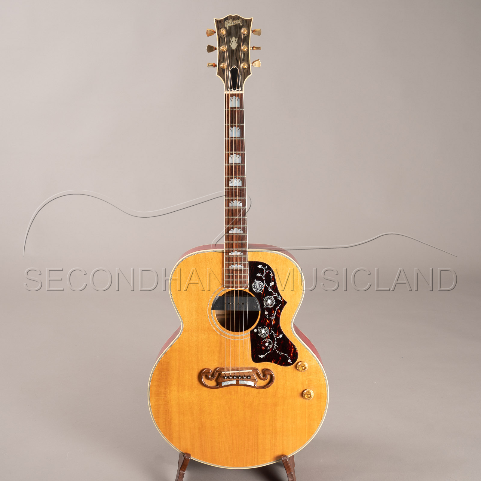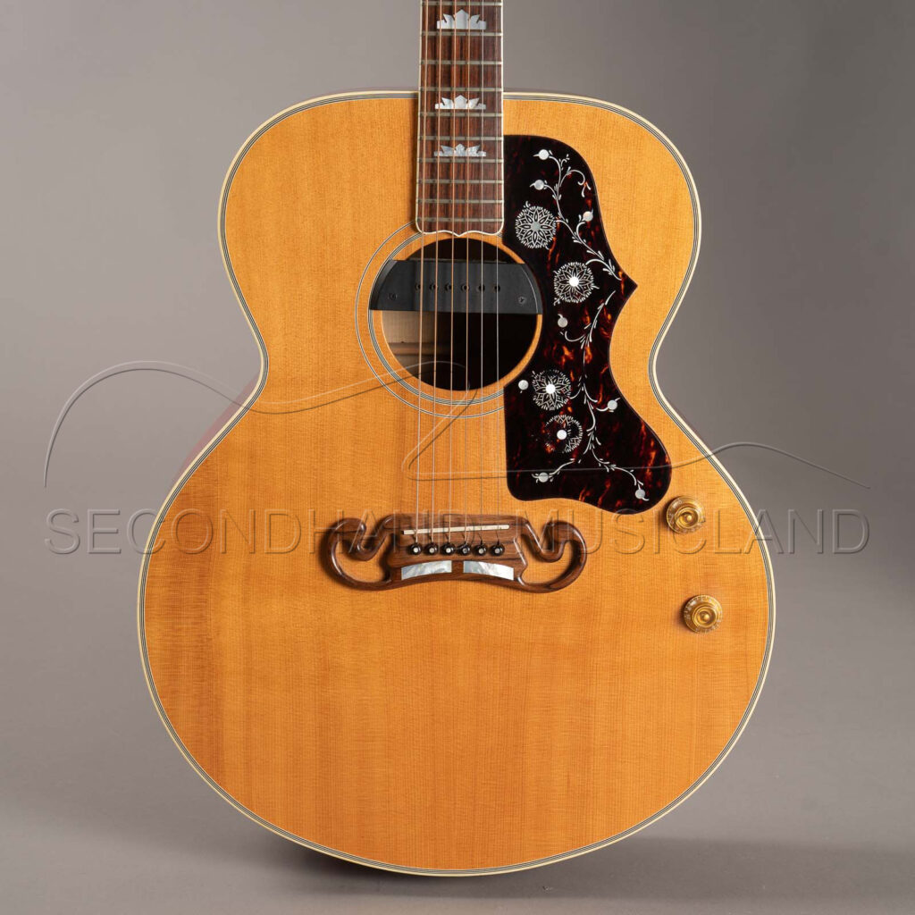 Eine sehr seltene Gibson J-200 Westerngitarre in Natur mit Boden und Zargen in der Farbe cherry