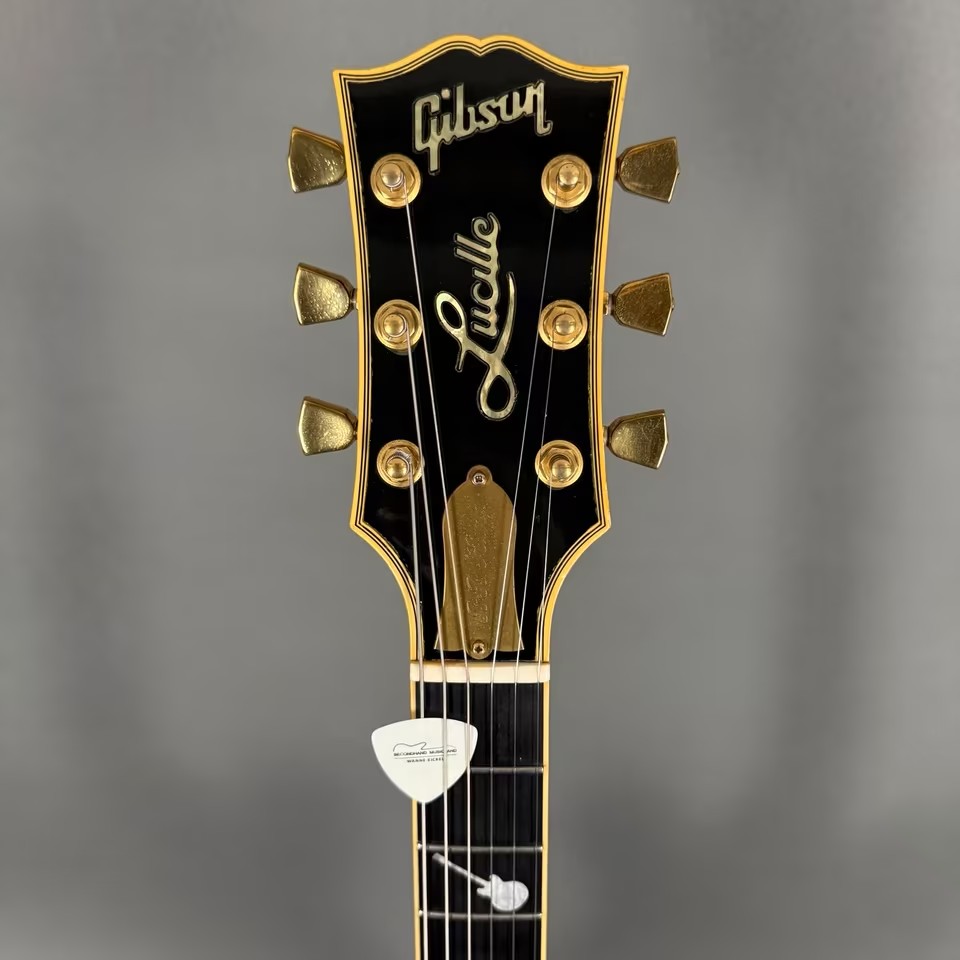 Griffbrett-Einlagen: Die Gitarre verfügt über spezielle Griffbrett-Einlagen, die sich von der Standard-Lucille unterscheiden.