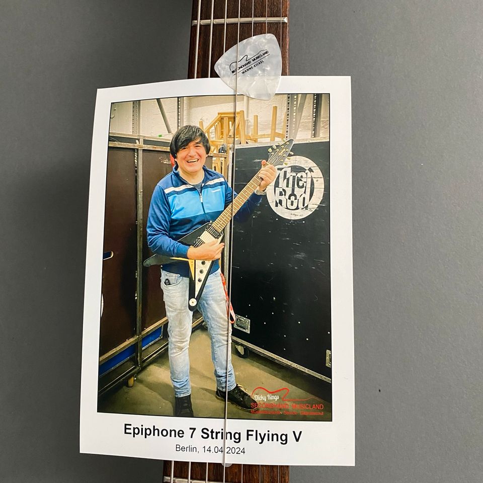 Hier eine gut erhaltene Epiphone 7-String Flying V ; Baujahr: 2001 ; Herkunftsland: Korea ; Seriennummer: U 00051284.. im Gigbag!