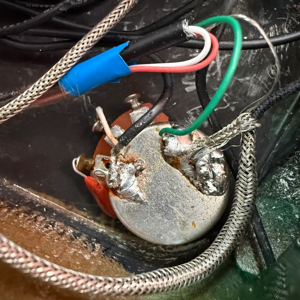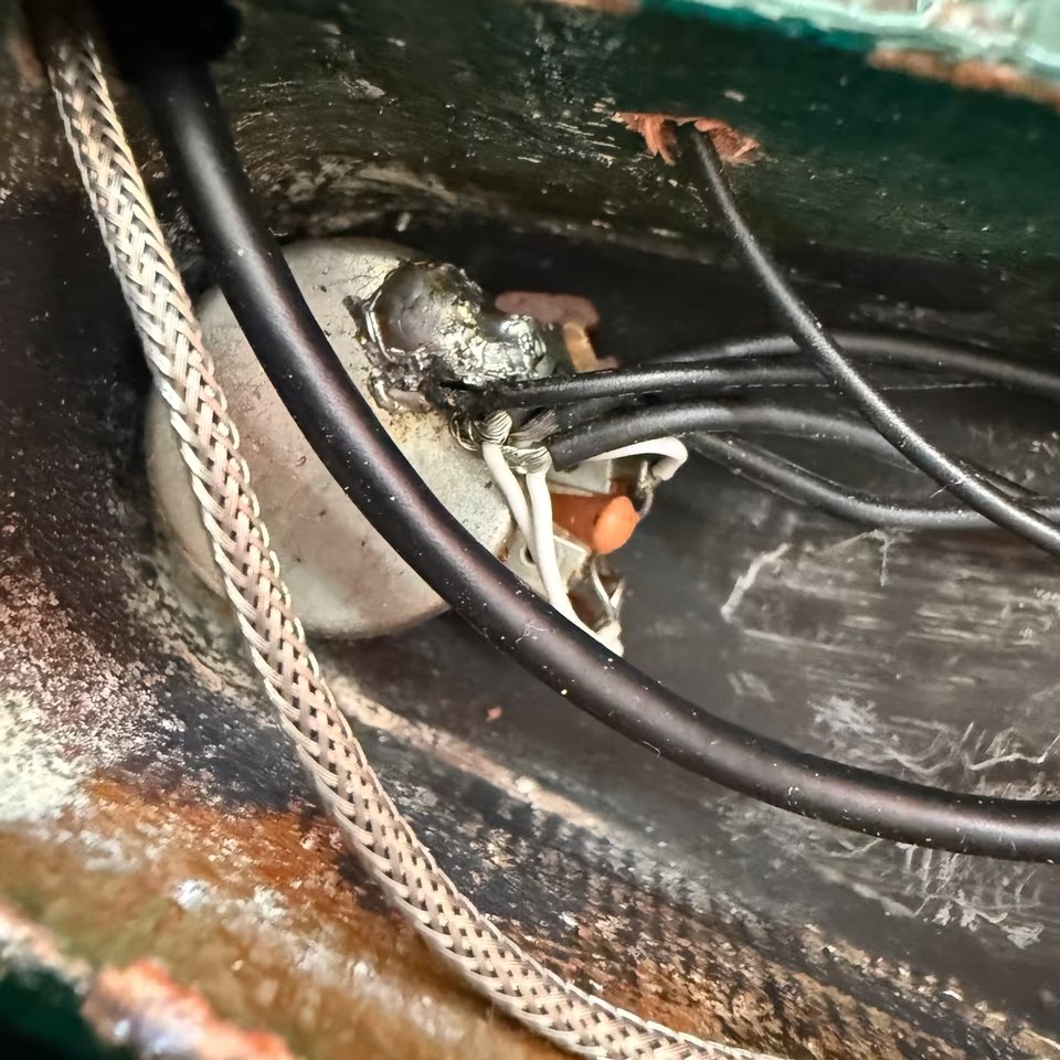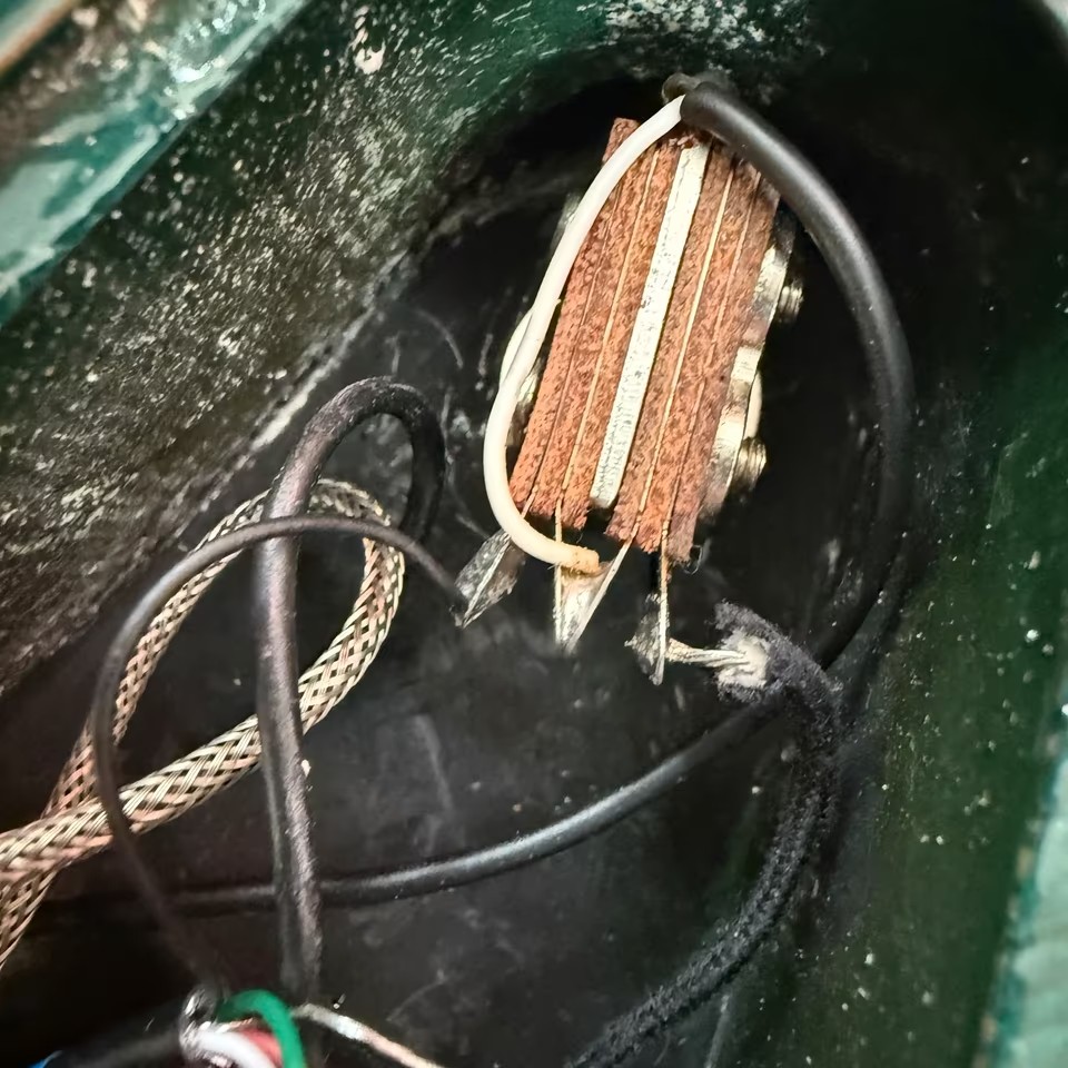 Hier wurden die Tonabnehmer mal getauscht, (siehe Fotos) die originalen Tonabnehmer und die Tremolofachabdeckung sind leider nicht mehr vorhanden ..