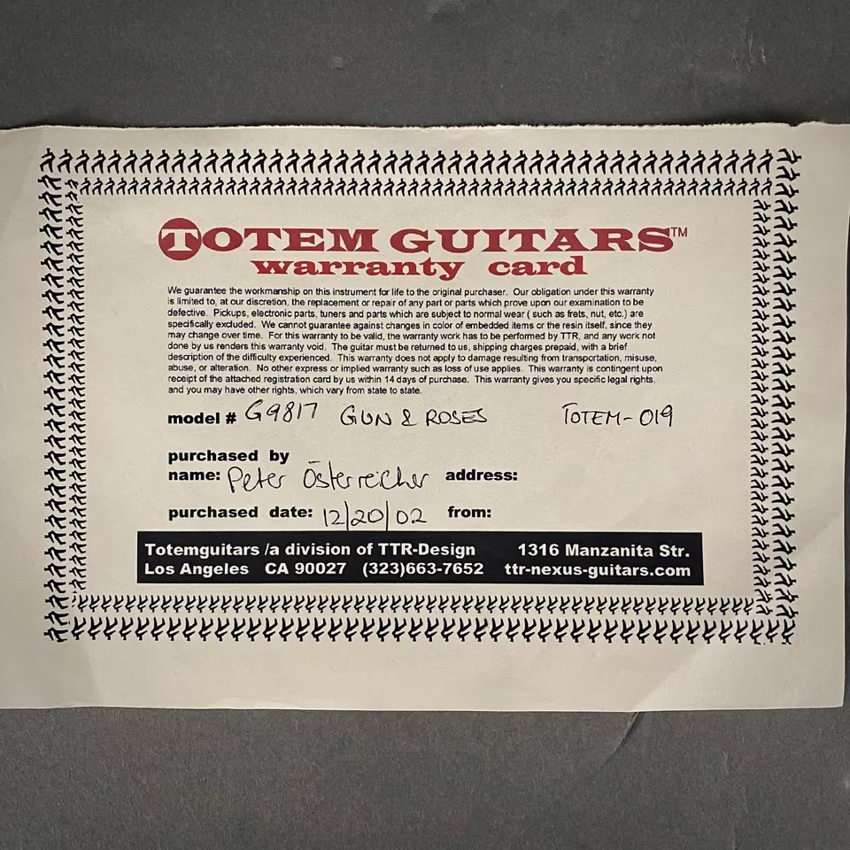 2002 Spalt Totem Guitars Guns & Roses USA Zertifikat inkl. Koffer Case
