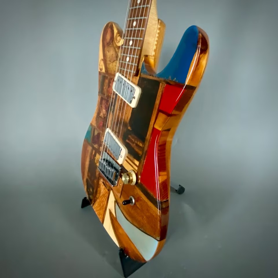 Hier eine sehr seltene E-Gitarre des Gitarrenbauers Michael Spalt, aus Totem Serie das Modell „Guns & Roses“ in sehr gutem Zustand, inklusive Zertifikaten und passendem Koffer..