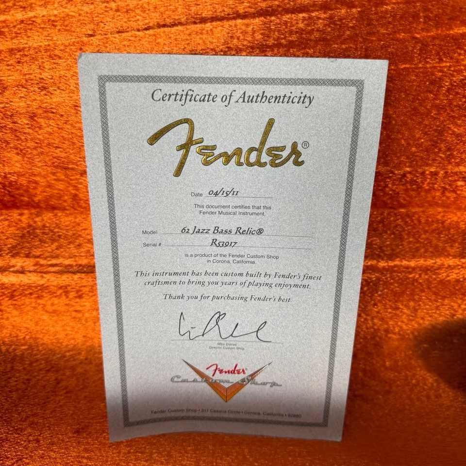 Hier ein Fender Jazz Bass Modell ´62 Relic, aus dem Custom Shop aus dem Jahre 2011 inklusive Zertifikat und Zubehör im original Koffer…