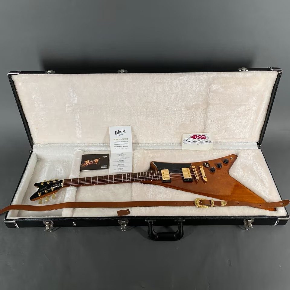 Das unorthodoxe Korpusdesign liegt irgendwo zwischen einem V und einer Explorer, mit hervorragender Resonanz dank der massiven Mahagoni-Konstruktion. Wie die ursprünglichen Neuauflagen wurden diese in begrenzter Anzahl hergestellt und kommen nicht sehr oft zum Verkauf.