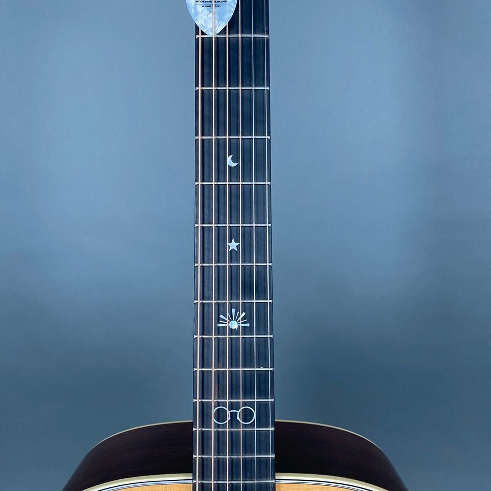 Die D-28 John Lennon Signature Edition Dreadnought Akustikgitarre ist der Nachfolger von Martins limitiertem Modell D-28 John Lennon 75th Anniversary, das an Johns 75. Geburtstag erinnert. Diese wunderschöne Dreadnought ist mit Sicherheit eine wunderbare Ergänzung für die Sammlung jedes Gitarrenliebhabers. Eine massive Sitka-Fichtendecke mit Vintage Tone System wird mit Boden und Zargen aus ostindischem Palisander kombiniert – auf der Rückseite ist passenderweise ein PEACE-zeichen eingelegt. Die Kopfplatte aus ostindischem Palisander ist mit John Lennons berühmter Selbstporträtillustration verziert, die unter dem Martin-Schriftlogo ruht. Ein wunderschönes Perlmutt-Design im John-Lennon-Stil ist auf dem Ebenholzgriffbrett eingelegt, um dieses Modell zu vervollständigen. Zu den weiteren Ausstattungsmerkmalen gehören gemaserte Ivoroid-Einfassung, schwarz/weißes Boltaron-Endstück und Deckeneinlagen, ein modifizierter niedriger ovaler Hals mit Performing-Artist-Konus sowie verchromte Mechaniken mit großen Knöpfen.