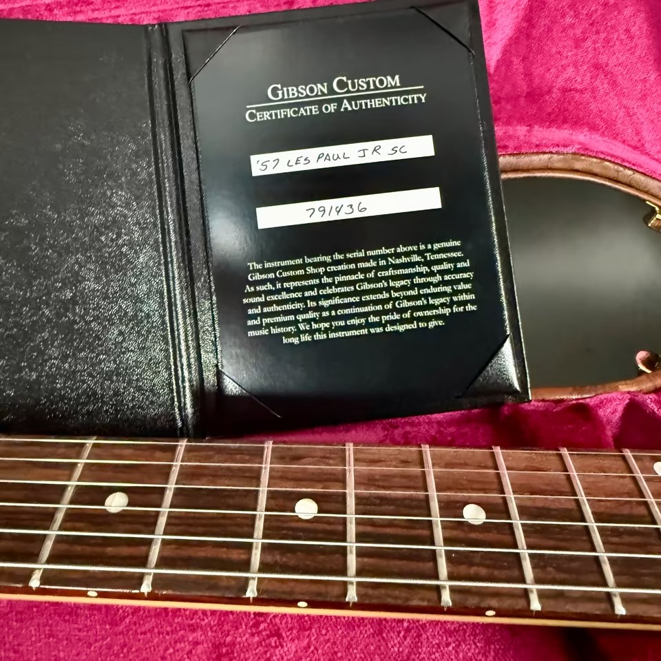 Hier eine Gibson Les Paul Junior TV Custom Shop 57 Reissue inklusive Zubehör wie CS Zertifikat usw im original Gibson Lifton Case..