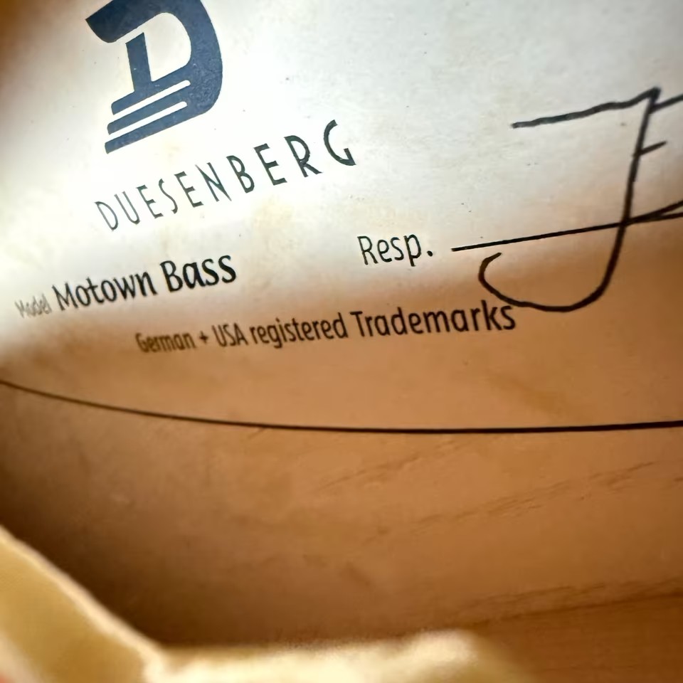Der Bass kommt inkl. Papieren und orig. Duesenberg-Koffer..
