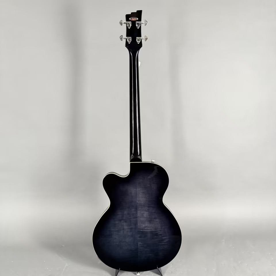 Der große Korpus besteht aus einer Fichtendecke, traditionell gebogenen 35mm hohen Zargen und einem Boden, beides aus geflammtem Ahorn. Decke und Boden sind nur leicht gewölbt, sodass sich seine eleganten Kurven angenehm an Dich schmiegen können. Dadurch ist das Handling dieses Basses trotz seiner Größe sehr bequem.