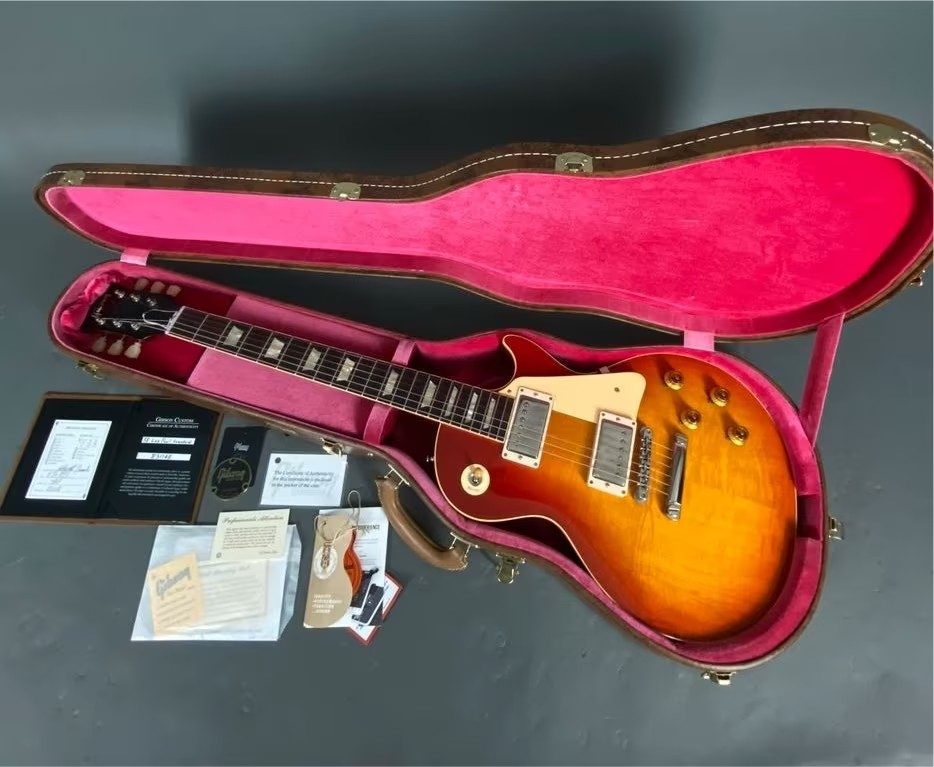 Hier eine Gibson Les Paul Standard ´58 in der seltenen Farbe sunrise tea burst, Custom Zertifikat, hangtags und original Lifton Case…