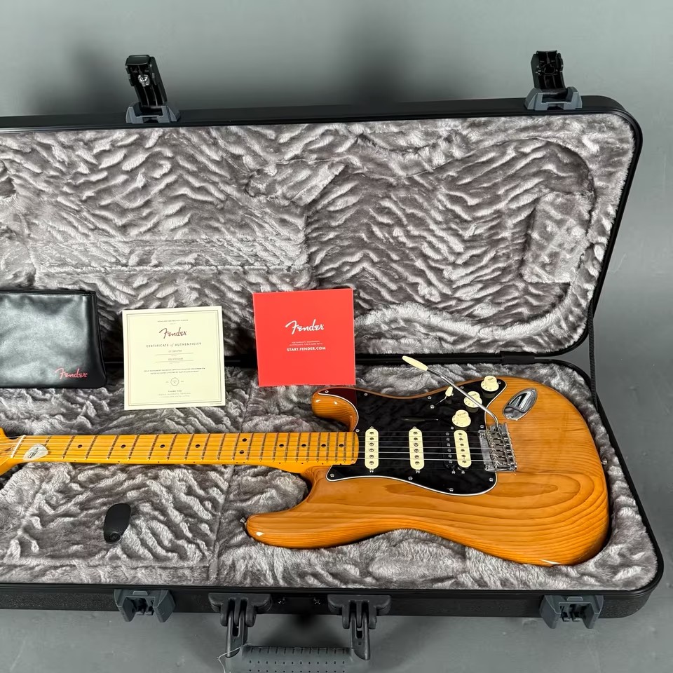 Hier eine nahezu neuwertige Fender AM Pro II Strat HSS MN Roasted Pine made in USA im Jahre 2024, inkl. original Koffer und Zubehör in sehr gutem Zustand!