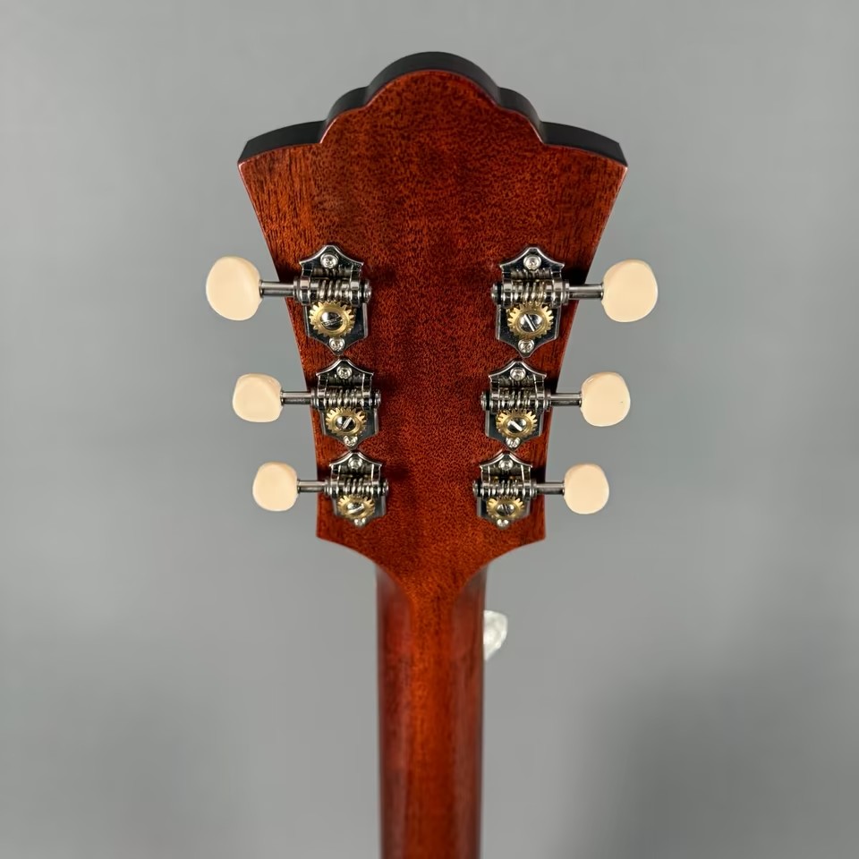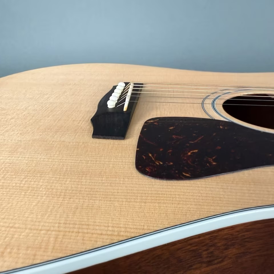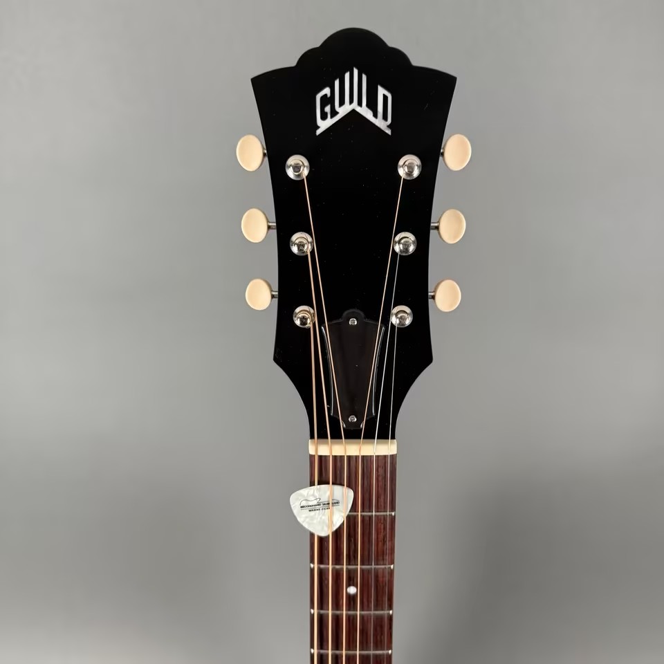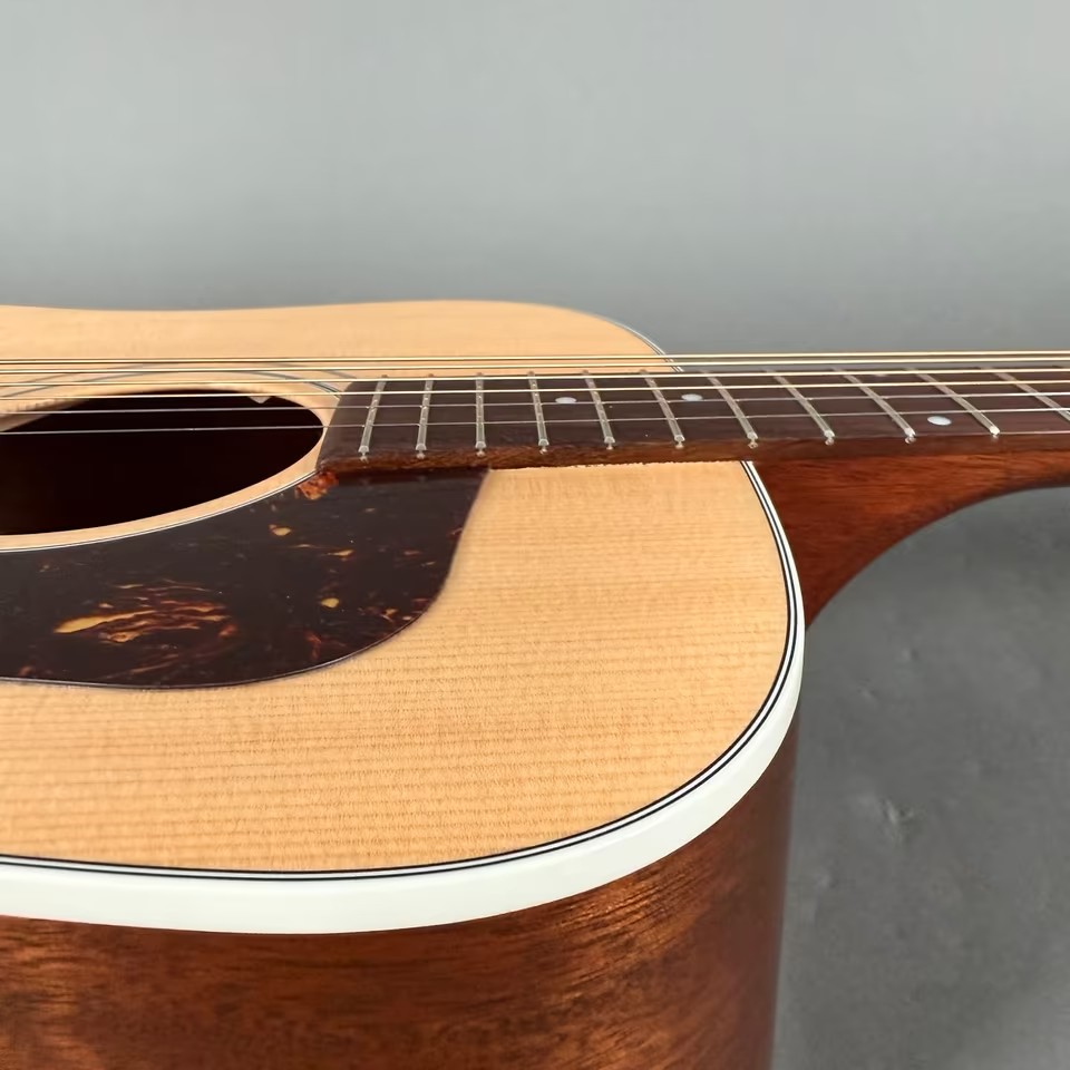 Die D-40 von Guild USA ist perfekt für Spieler, die den ultimativen Dreadnought-Sound suchen. Die klassische Holzkombination aus einer massiven Sitka-Fichtendecke und einem massiven afrikanischen Mahagoni-Boden und -Zargen sorgt für bemerkenswertes Volumen, Klarheit und Sustain. Die D-40 verfügt über einen Steg und ein Griffbrett aus ostindischem Palisander, hochwertige 20:1-Mechaniken mit offenem Getriebe sowie einen handgeschnittenen Knochensattel und -sattel. Eine elegante und dünne Satin-Lackierung verleiht dieser Gitarre ihr vertrautes „broken-in“-Look und -Gefühl, während die Tonhölzer ihr optimales Klangpotenzial entfalten können. Zu den zeitlosen Ausstattungsmerkmalen der D-40 gehören eine Rosette im Vintage-Stil, ein Schildpatt-Schlagbrett, weißes ABS-Binding und das Guild Peak-Logo auf der Kopfplatte als Intarsie. Jede D-40 wird mit einem handsignierten, nummerierten Echtheitszertifikat und einem Guild Archtop-Holzkoffer mit integriertem Humicase®-Befeuchtungssystem ausgeliefert. Zu den Oberflächenoptionen gehören Satin-Lackierung in Natural oder Antique Burst mit Cabernet-Boden, -Zargen und -Hals.