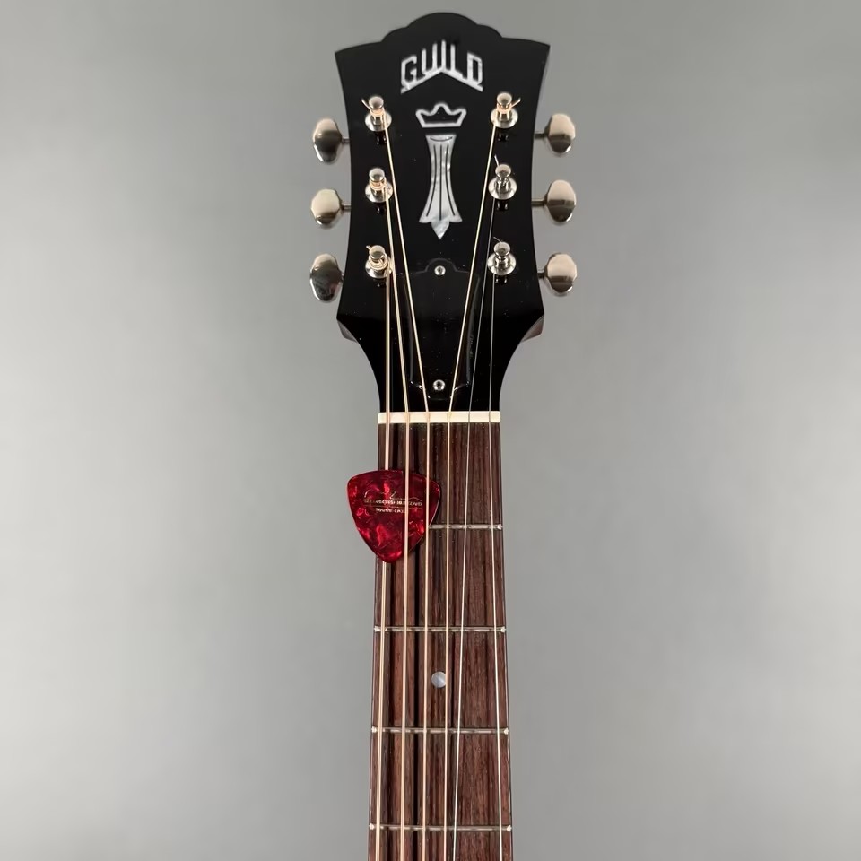 Ihr Vorgänger, die F-48 Navarre, wurde nur von 1972 bis 1976 produziert, und Originalversionen sind ein seltener Schatz. Die heutige Version versprüht den gleichen Vintage-Charme mit zeitlosen Ausstattungsmerkmalen wie einem Schildpatt-Zelluloid-Schlagbrett, weißem ABS-Binding und dem Guild Peak-Logo-Inlay auf der Kopfplatte.