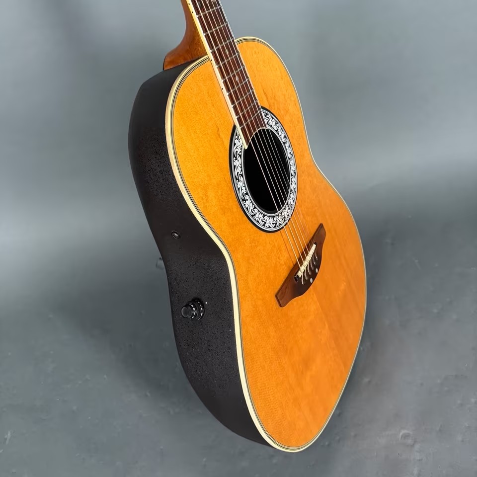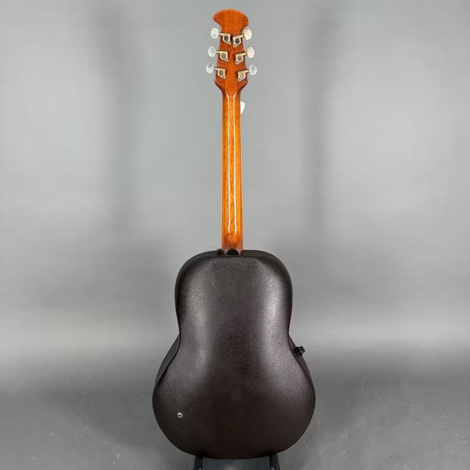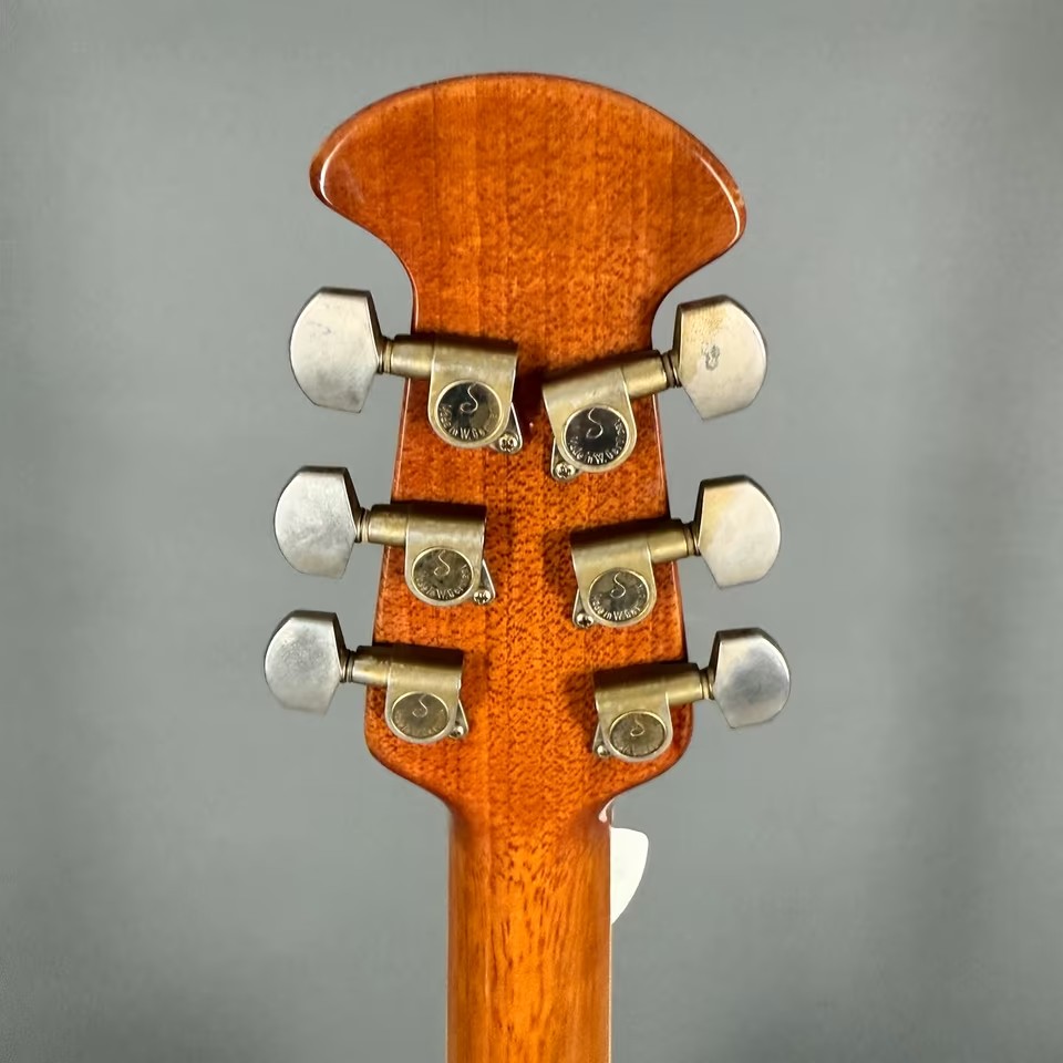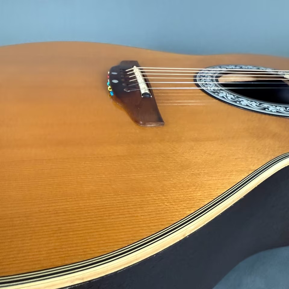 Es gibt hier keine groben Dings und Dongs im Body, auch keine Lackabplatzer oder Risse in der Decke, diese wölbt sich hier auch nicht nach oben, wie es bei einigen Ovations aus dieser Zeit hin und wieder vorkommen kann..