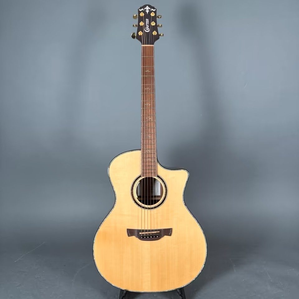 Hier eine absolut neuwertige Crafter LXG-1000 CE aus der Anniversary Serie, mit cutaway, in Grand Auditorium, eine akustisch-elektrische Gitarre mit L R Baggs Tonabnehmer, massiver Fichtendecke uvm …