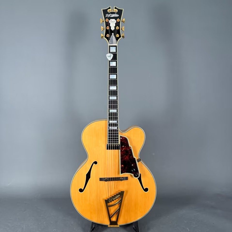 Hier eine nahezu neuwertige D‘ Angelico Premier EXL1 Jazzgitarre in Honey Blonde, made in China. Eine Archtop Jazz-Gitarre mit Floating Humbucker Tonabnehmer / Pickup, inklusive original Koffer.