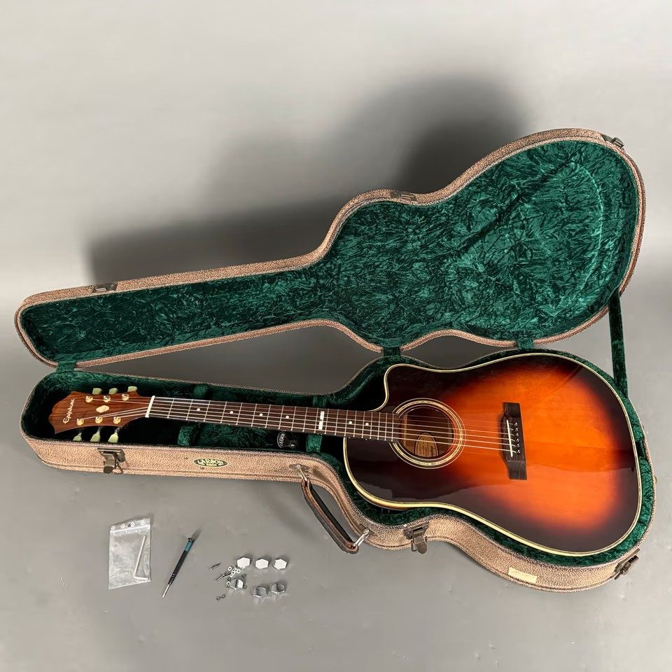 Hier eine wunderschöne und sehr selten Epiphone Akustikgitarre mit Programmierbarem Preamp / Soundsystem, in sehr gutem Zustand inklusive hochwertigem Koffer!
