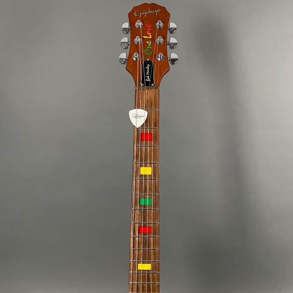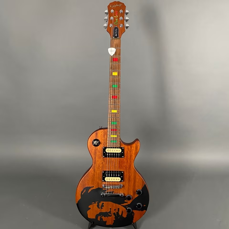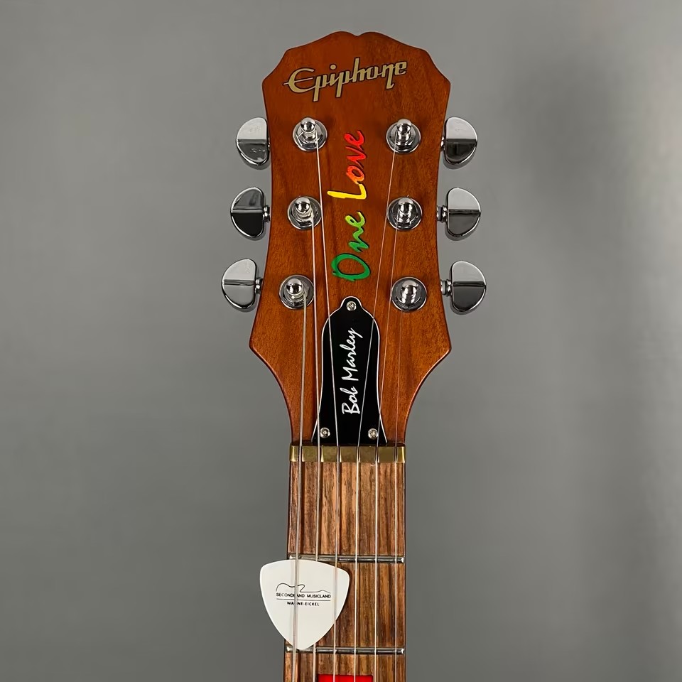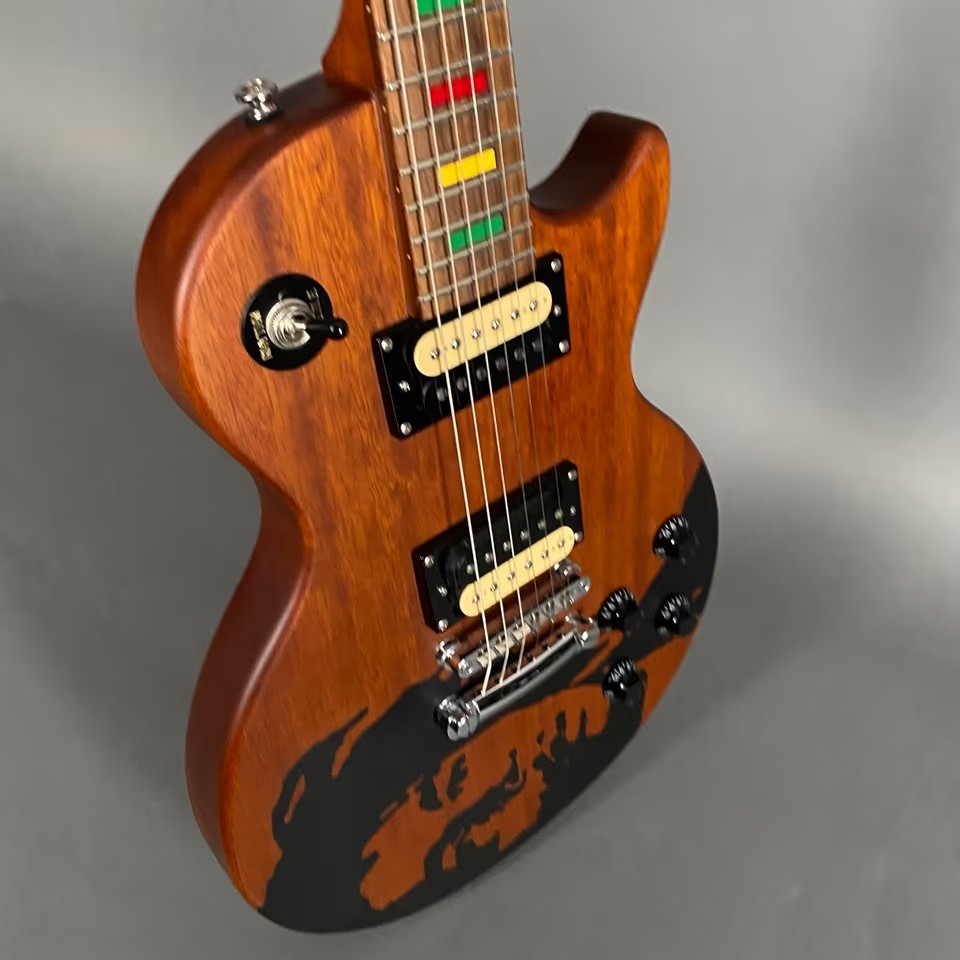 Epiphone Limited Edition Bob Marley, ist eine Les Paul „Special“ aus Mahagoni Holz, mit Mechaniken der Marke Grover und mit 2 Humbucker Tonabnehmern ausgestattet.