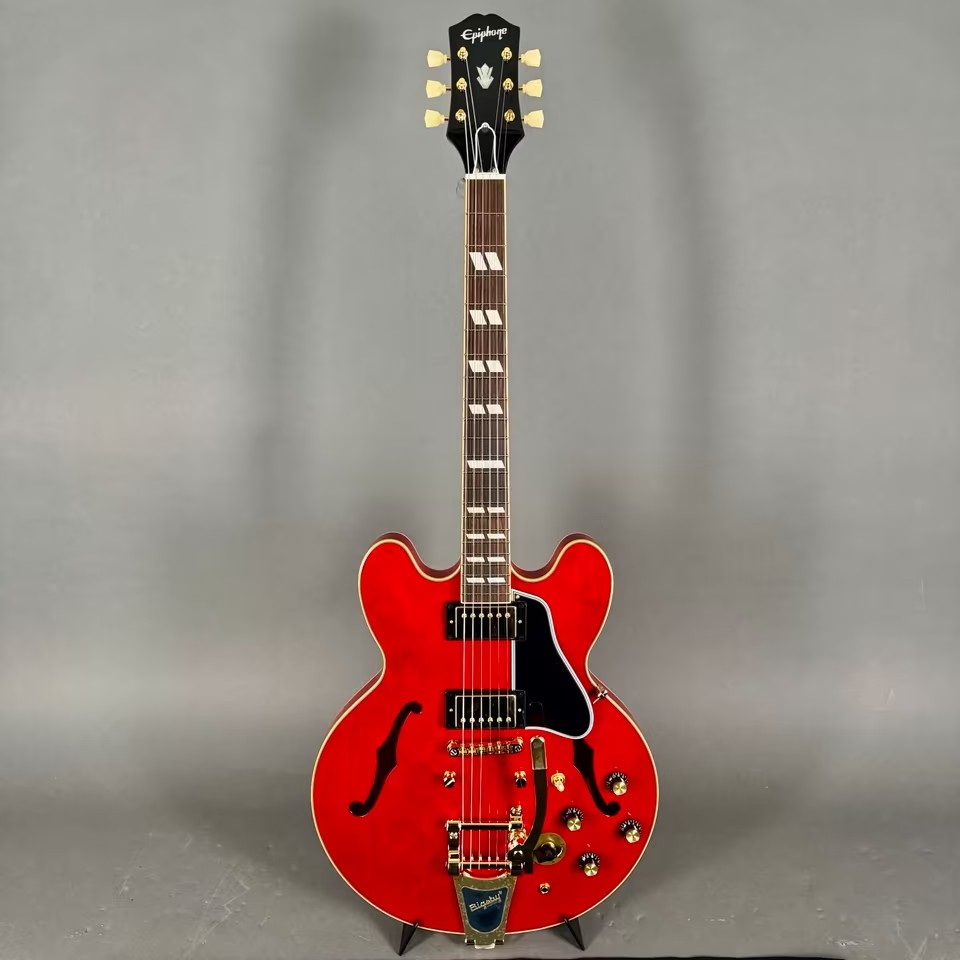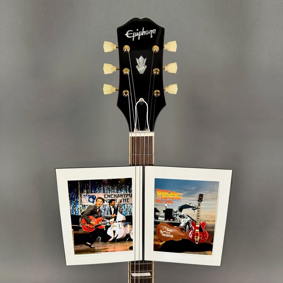 Auch wenn die ES-345 erst 1959 eingeführt wurde, fügt sich die Gitarre perfekt in das Filmsetting von 1955 ein und kreiert einen Hauch von anachronistischer Magie. Dieser Moment untermauerte nicht nur das cineastische Vermächtnis der Gibson ES-345, sondern auch ihren Status als beliebtes Kultinstrument in der Welt des Rock’n’Roll. Mit der Epiphone Back to the Future ES-345 können Fans jetzt eine Nachbildung dieser legendären Gitarre ihr Eigen nennen.