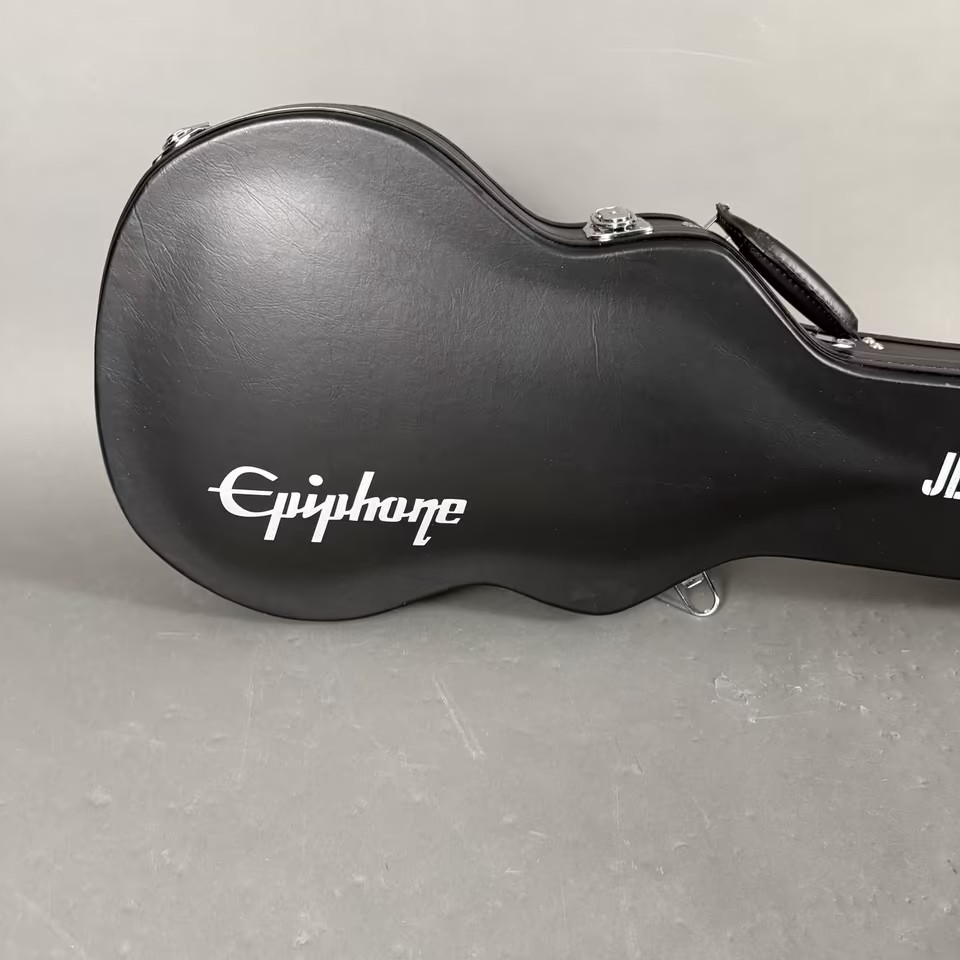 Kommt im original Black-Epiphone Koffer und Zubehör