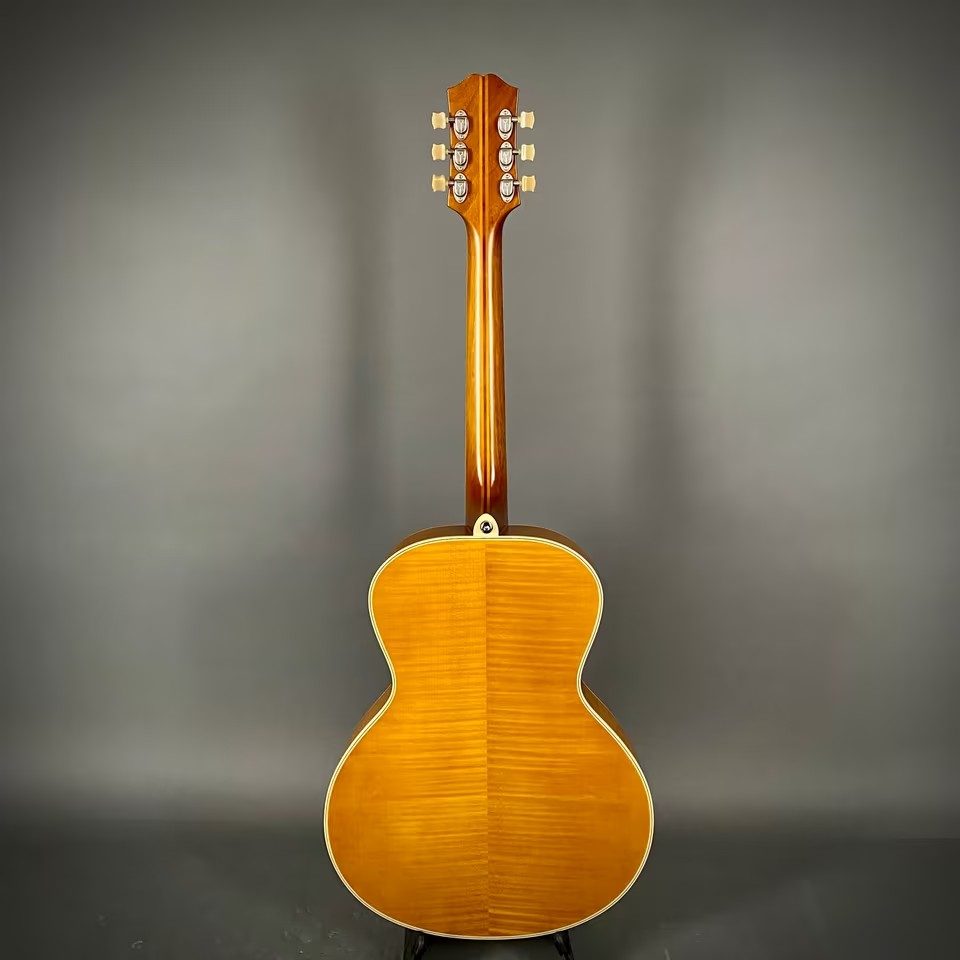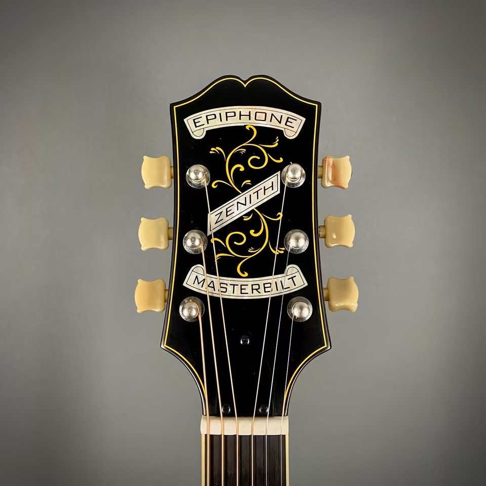 Die Epiphone Zenith Round Hole aus der Masterbilt Century Collection ist eine klassische Archtop Gitarre im Stile der Big Band Ära der 1930er Jahre mit traditioneller Konstruktion und moderner Tonabnehmerausstattung. Das Instrument mit gewölbter Decke aus massiver Fichte verfügt über eine Längsverstrebung für maximale akustische Klangentfaltung, während das aus einem Fishman eSonic HD Tonabnehmer und einem NanoFlex HD Preamp bestehende Tonabnehmersystem den unverfälschten Akustik-Sound für Verstärker, Mischpulte oder Aufnahmegeräte verfügbar macht. Die Roundhole-Variante der Zenith erzeugt im Gegensatz zur F-Hole Version ein kräftigeres akustisches Klangbild.