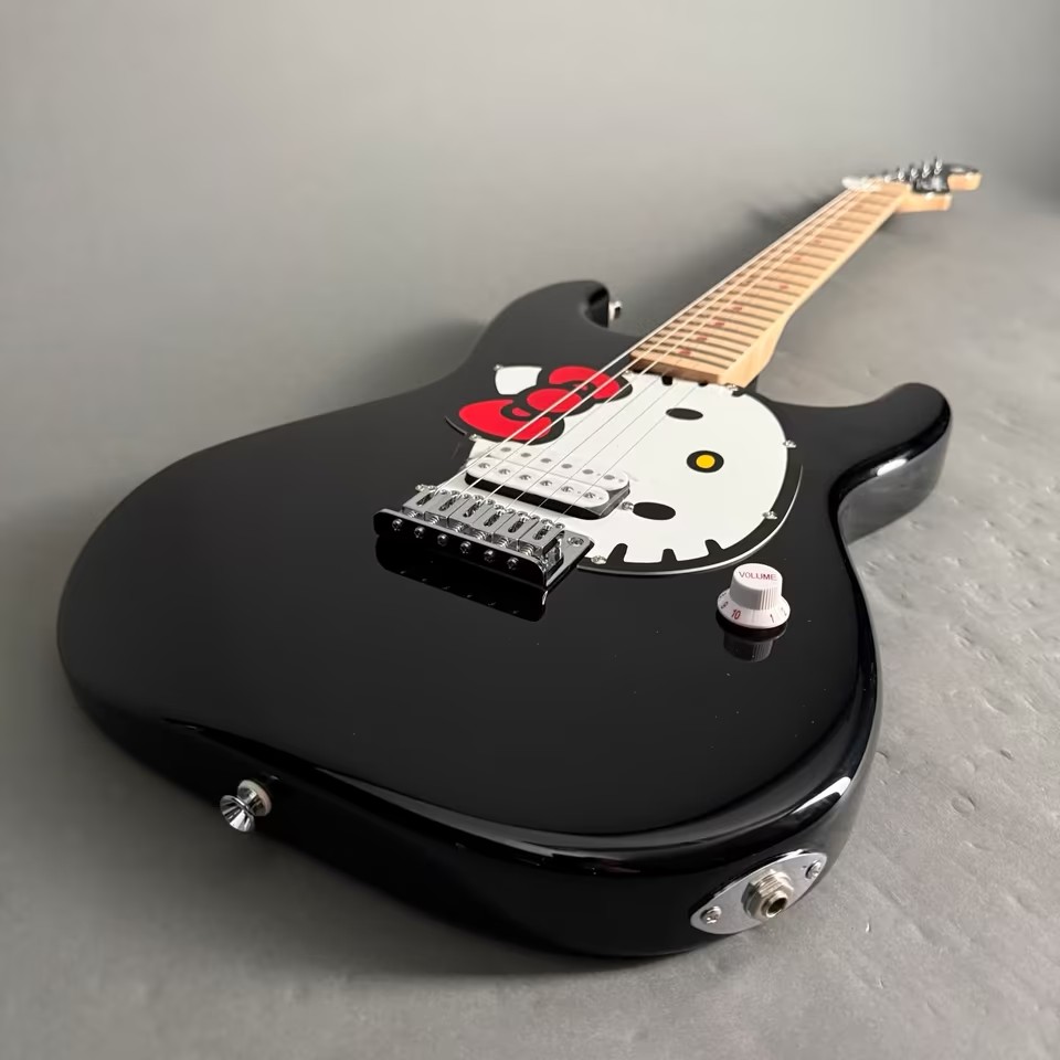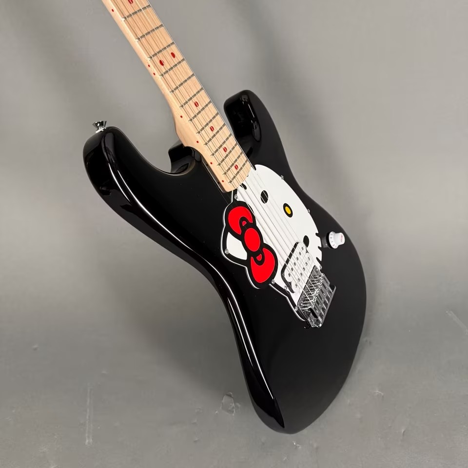 Hello Kitty Motive auf Pickguard, Body und Kopfplatte