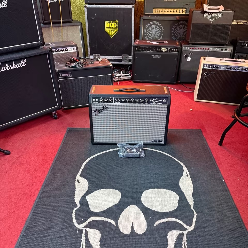 Der Fender Tone Master Deluxe Reverb Verstärker liefert trotzt Verzicht auf die traditionellen Vakuumröhren den authentischen Sound des legendären Combo-Amps ohne Abstriche in Klangverhalten und Dynamik zu machen. Verantwortlich hierfür sind ein DSP mit massiver Rechenpower, der die komplexen Interaktionen der originalen Röhrenschaltung detailliert nachempfindet, und eine optimal abgestimmte 100 Watt Class-D-Endstufe, die in Sachen Headroom und Dynamik nicht vom 22 Watt 6V6-Original zu unterscheiden ist. Zum hervorragenden Klang und erfreulich geringen Gewicht des Tone Master Deluxe Reverb Combos tragen darüber hinaus das resonante Gehäuse aus massiver Kiefer und der 12″ große Jensen N-12K Neodym-Lautsprecher bei. Wie gewohnt bietet der Combo-Amp einen Normal-Kanal für die typischen Fender-Cleans und einen Vibrato-Kanal, der mit Reverb- und Vibrato-Effekten umfangreiche Klangoptionen bereit hält. Als Tribut an moderne Einsatzbereiche auf der Bühne und im Recording-Studio verfügt der Fender Tone Master Deluxe Reverb außerdem über eine