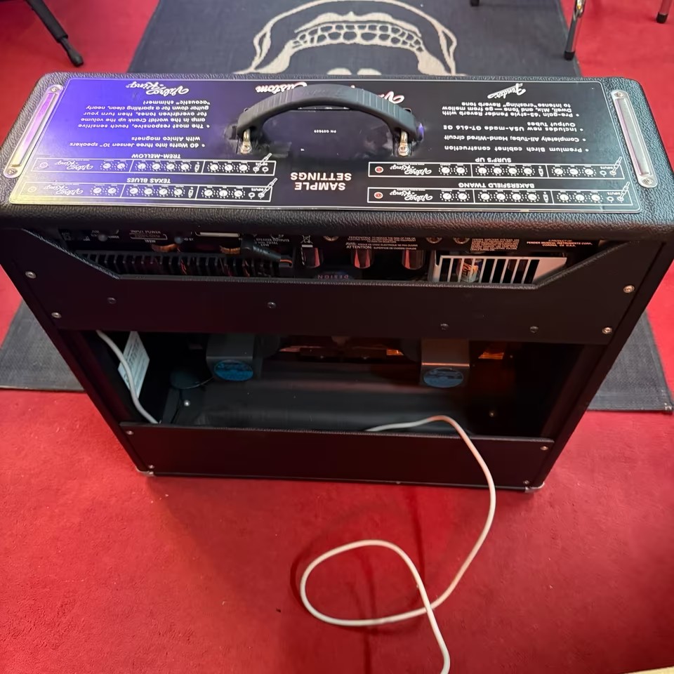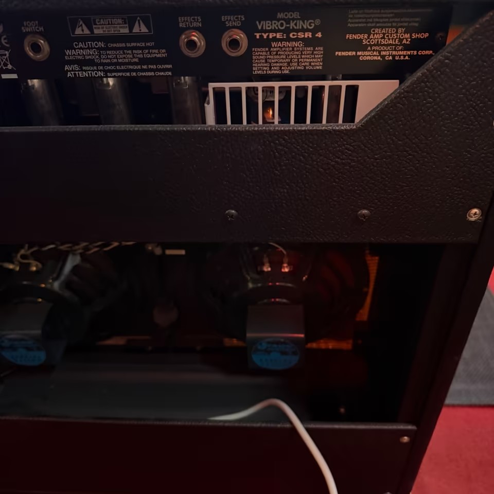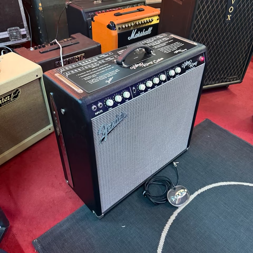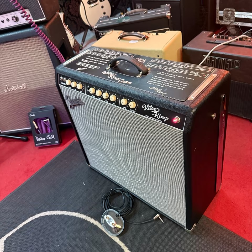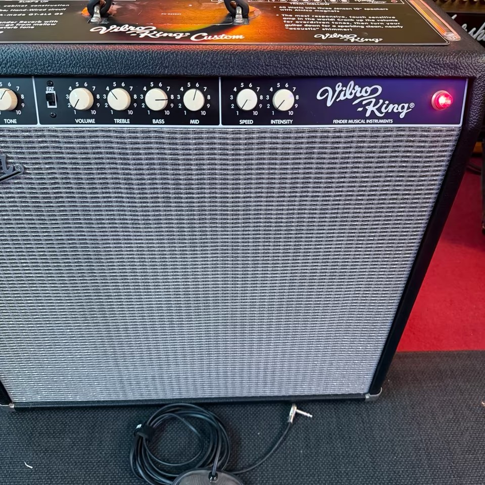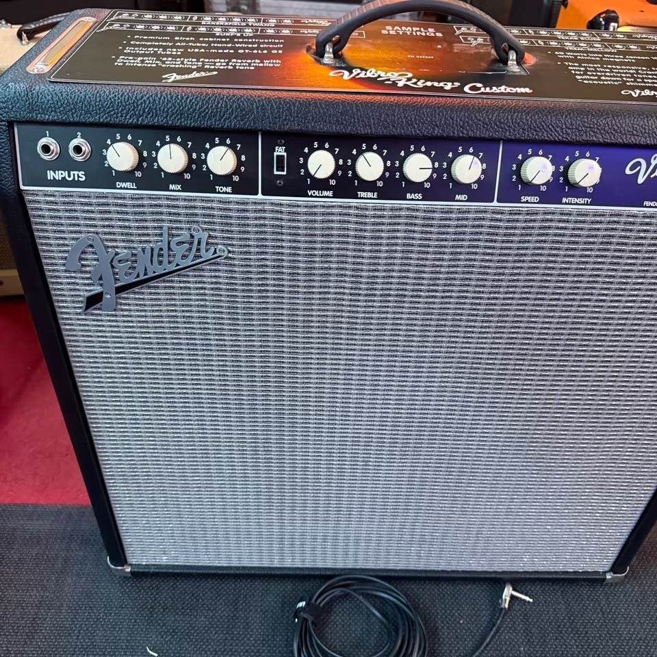 Hier ein nahezu neuwertiger Fender Vibroking in schwarz, mit 3 x Jensen Blue Speakern, inkl. original Fußschalter und Schutzhülle, sowie dem „Setting Example Letter“ …