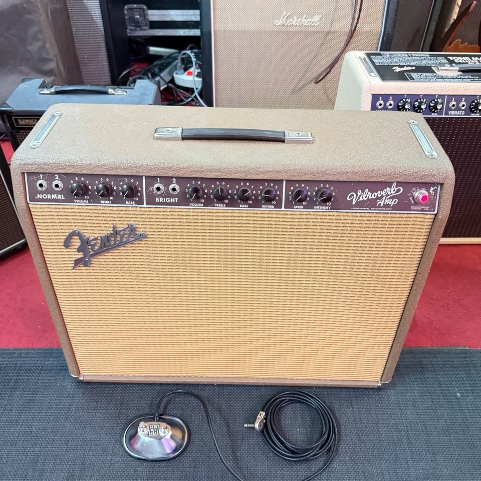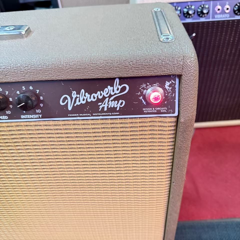 Fender Vibroverb Reissue (insbesondere die ’63er Version) gilt unter Gitarristen als Kult-Verstärker, da er das erste Modell war, mit dem Fender Anfang der 90er Jahre seine berühmte Reissue-Serie startete. Er reproduziert den seltenen „Brownface“-Sound des Originals von 1963, das als erster Fender-Amp überhaupt über einen integrierten Federhall verfügte.