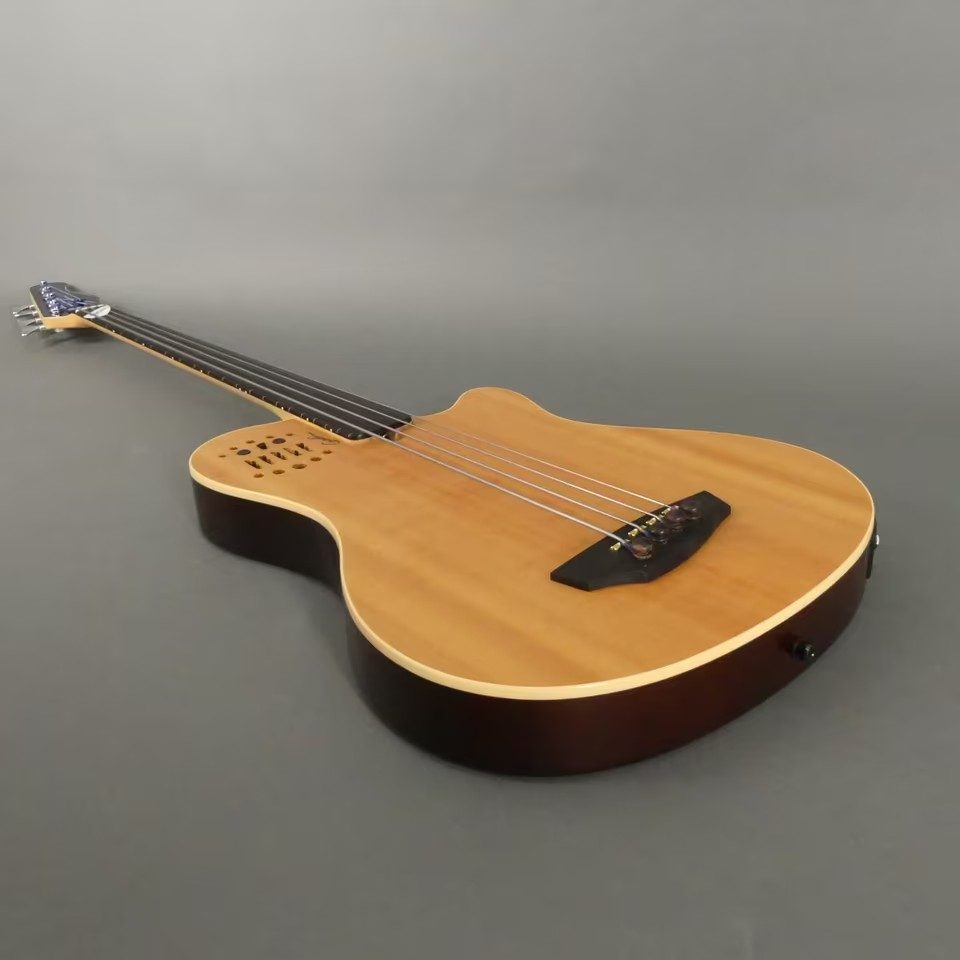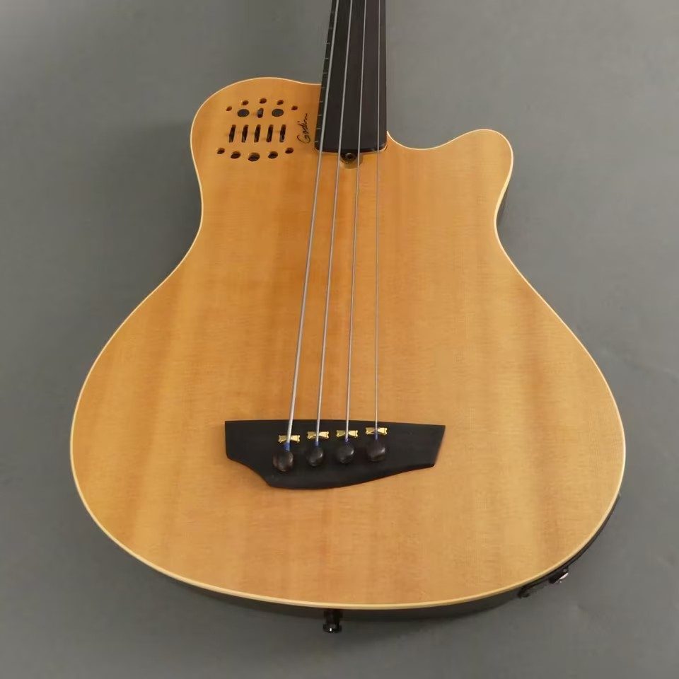 The A4 Fretless features a solid spruce top for balanced sound reproduction & the silver leaf maple body adds strength & clarity to the bass’s overall sound.