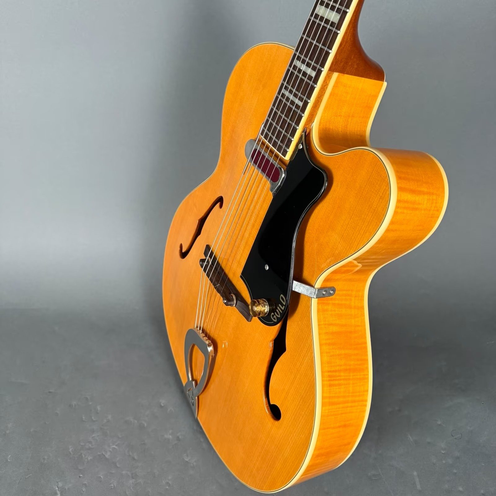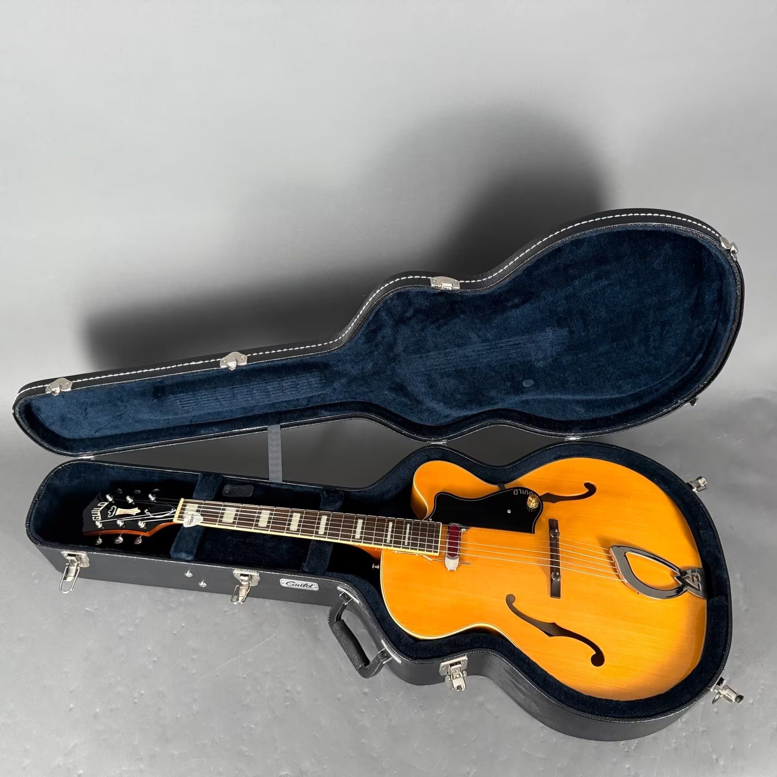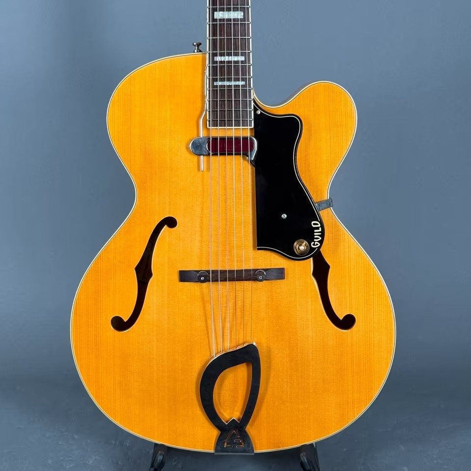 Hier eine nahezu neuwertige Guild Archtop Jazz-Gitarre mit DeArmond Rhythm Chief Floating Pickup, inklusive Koffer Tonabnehmer made in Korea inklusive original Koffer !