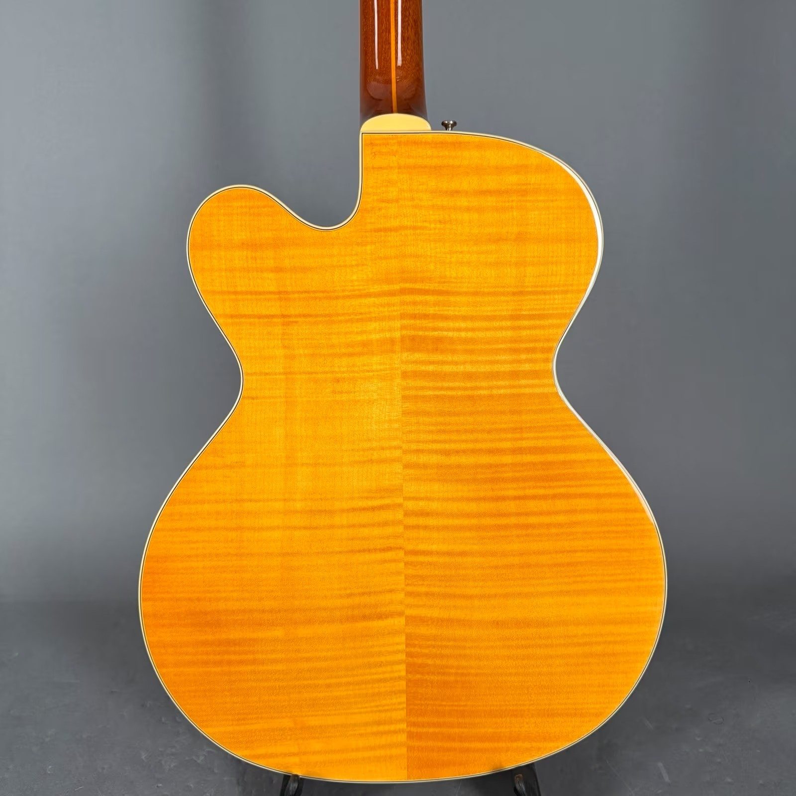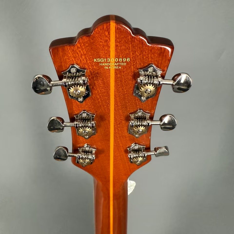Vom stilvollen Harp Saitenhalter aus werden die Saiten über eine traditionelle Archtop Bridge aus Ebenholz geführt, deren kompensierte Saitenauflage eine saubere Intonation verspricht. An der Kopfplatte sorgen außerdem ein Knochensattel und Grover Sta-Tite Open-Gear Tuner für ein exaktes und stabiles Tuning der Gitarre.