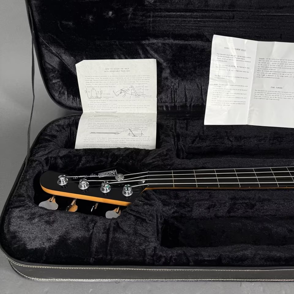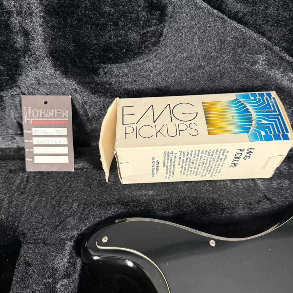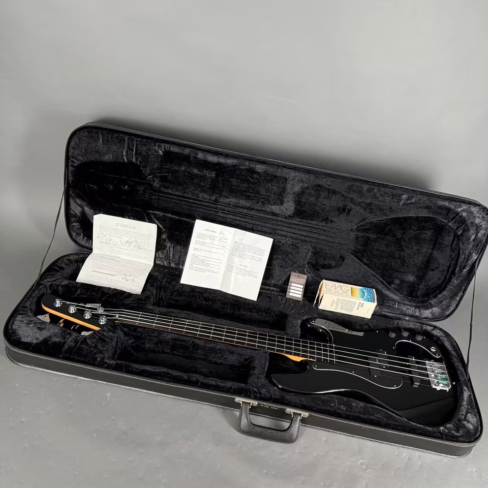 Der Bass kommt inkl. hangtag, den original Tonabnehmern in EMG-Verpackung und inkl. passendem Koffer aus dieser Zeit.