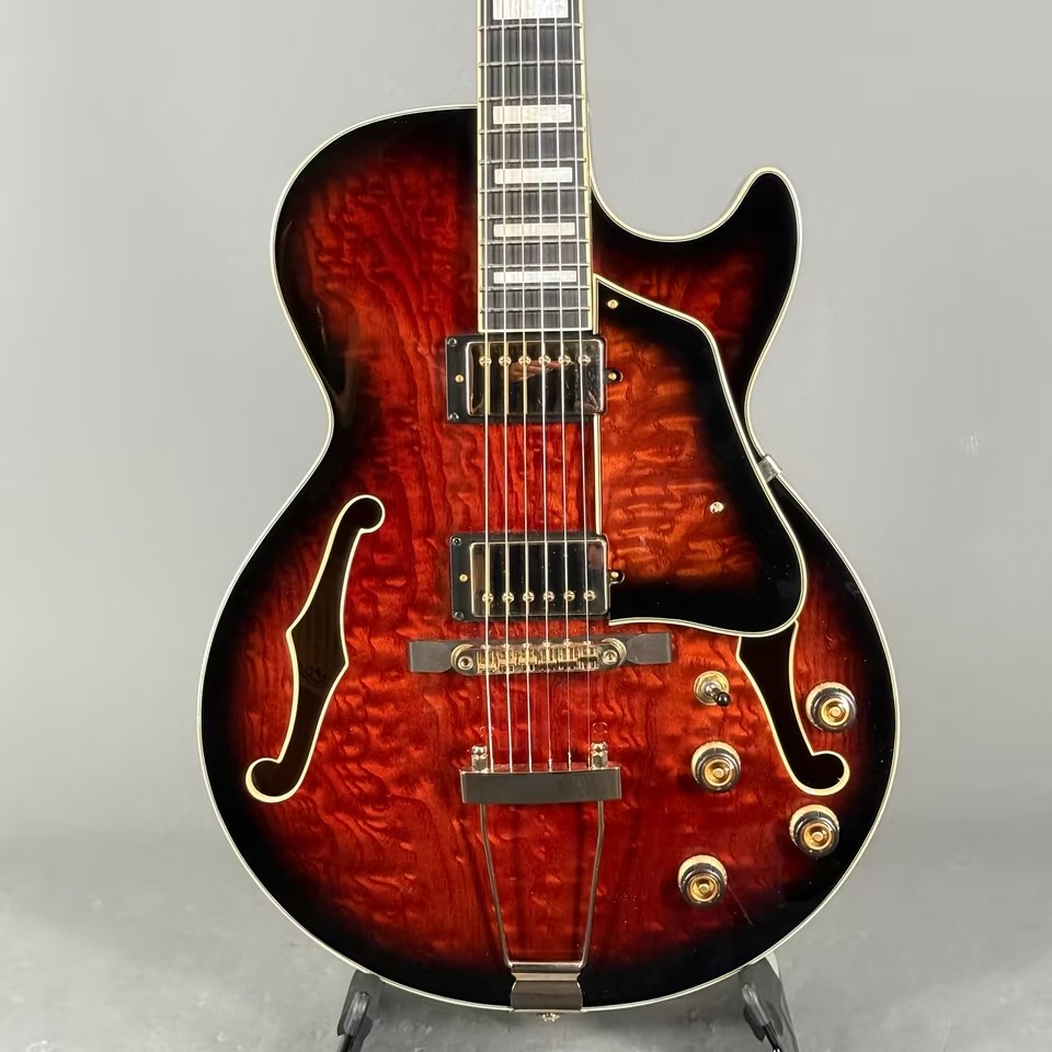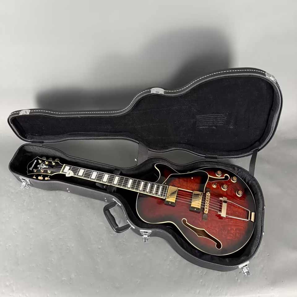 eine wunderschöne Archtop Jazz-Gitarre mit 2 x Humbucker Tonabnehmern / Pickups, einer wunderschönen Decke, inklusive Koffer.
