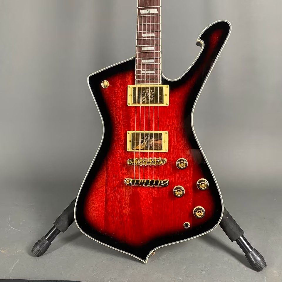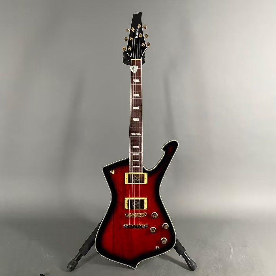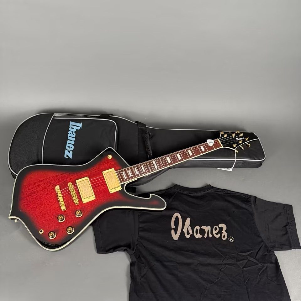Hier eine wunderschöne Ibanez Iceman E-Gitarre mit Riegelahorndecke und den legendären Super 80 „Flying Finger“ Humbuckern, inklusive Ibanez Gigbag und Ibanez Vintage T-Shirt!