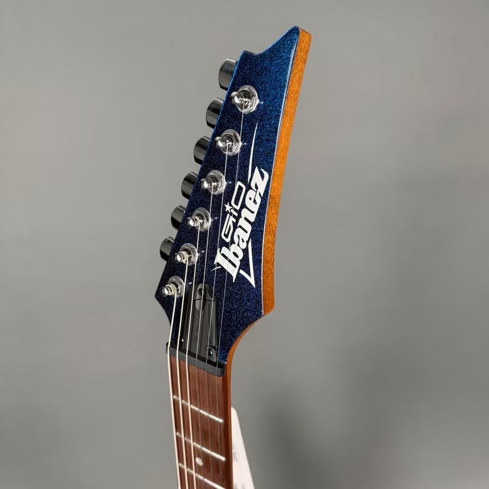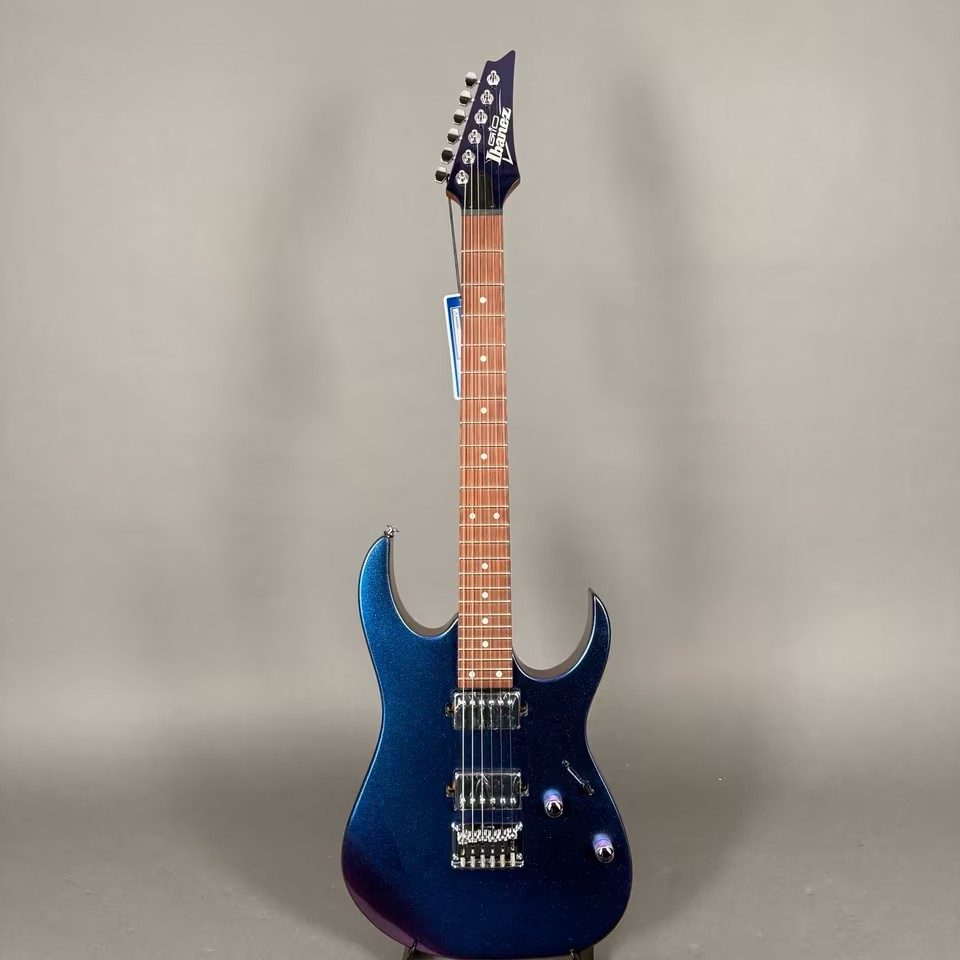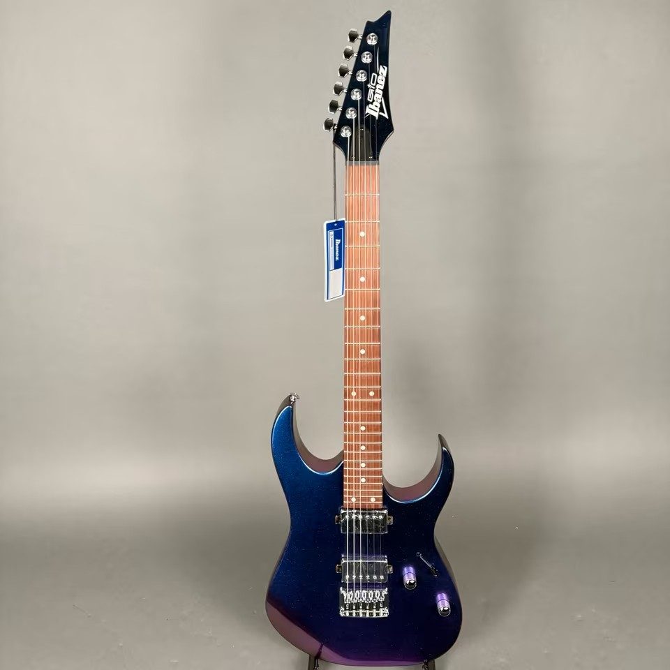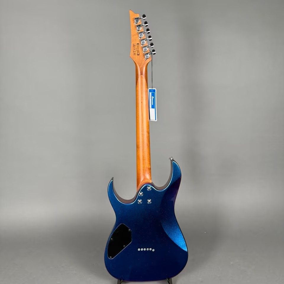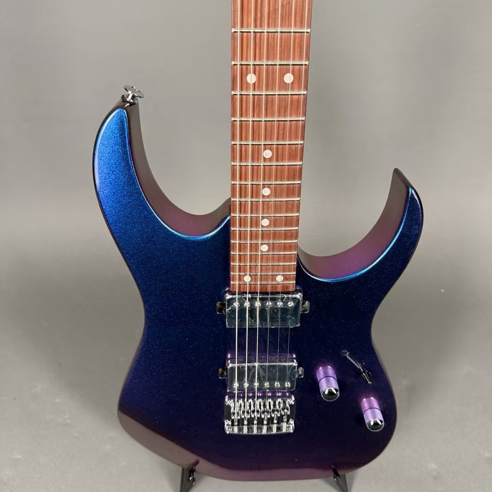 Die Ibanez Gio GRG121SP-BMC Blue Metal Chameleon ist eine durch und durch auf saftige Riffs und gnadenloses Shredding ausgelegte E-Gitarre aus der einsteigerfreundlichen Gio-Serie. Das Instrument im ikonischen RG-Design setzt auf gewohnt ergonomische Konturen ihres RG-Korpus aus Pappelholz und verfügt über einen wendigen Ibanez AANJ Halsfuß, der das Verbindungsstück zum gertenschlanken GRG-Hals aus geröstetem Ahorn bildet. Für die passenden klanglichen Argumente stehen hingegen zwei Ibanez Classic Elite Humbucker mit Nickel-Kappen bereit, welche dank 5-fach ausgeführtem Tonabnehmerwahlschalter mit interessanten Schaltkombinationen eine ungeheure Vielzahl potenzieller Sounds abzurufen wissen. Nicht zuletzt verfügt die Ibanez Gio GRG121SP-BMC über eine solide Ibanez F106 Brücke, Druckgussmechaniken und ein aufsehenerregendes Blue Metal Chameleon Finish mit Flop-Effekt.