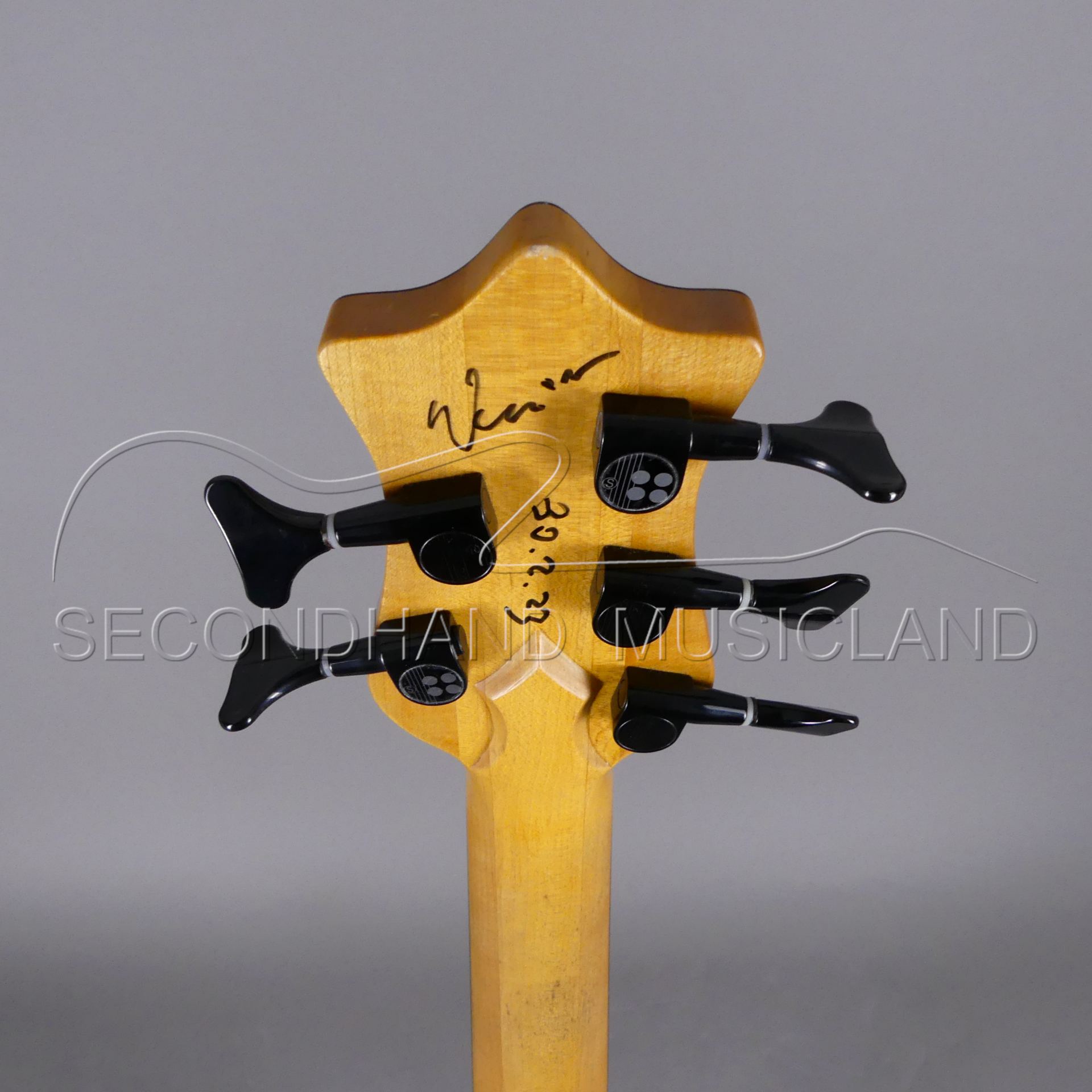 Der Bass ist hinten auf der Kopfplatte von Werner signiert worden. Selbstverständlich gibt es Fotos davon!