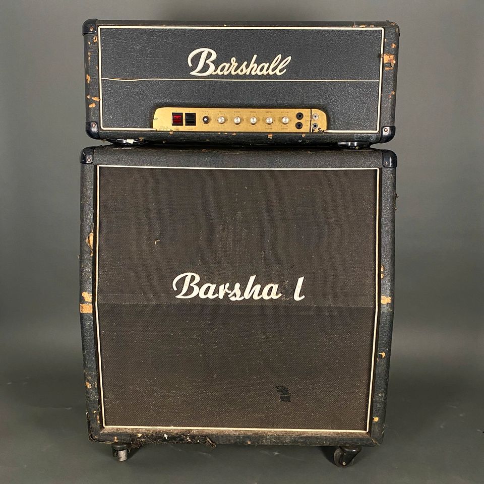 Dieses Halfstack bestehend aus einem Marshall JMP TOP mit Master Volumen und einer Marshallbox MR 1982 A mit den geänderten Schriftzügen „BARSHALL“, dürfte jedem Fan der Ärzte bekannt sein..