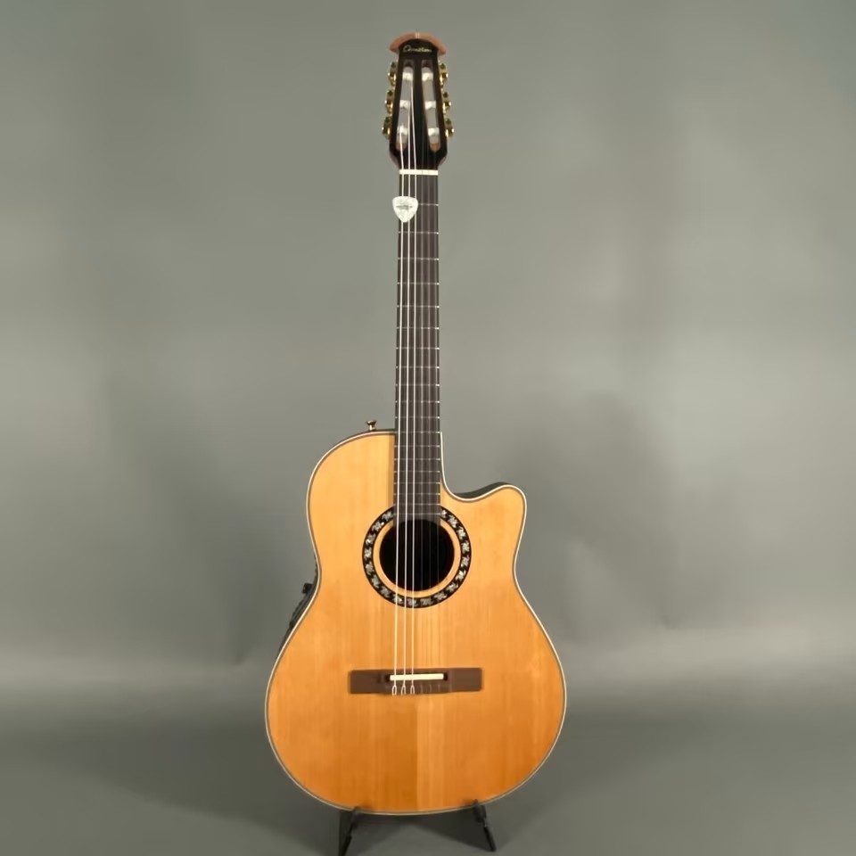 Hier eine nahezu neuwertige Ovation Legend Classical 1773AX-4 in naturfarbenem Finish, eine elektroakustische Konzertgitarre im typischen Ovation-Roundback-Format mit rundem Schallloch, inkl. Tonabnehmer – Zargen-Preamp mit integriertem Stimmgerät, im original Koffer…
