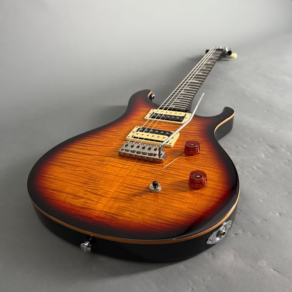 Dies ist eine PRS SE Custom 24, aus der frühen Produktion, das für seine hohe Fertigungsqualität aus Korea bekannt ist. Während moderne SE-Modelle oft in Indonesien gefertigt werden und einen Blade-Switch (Schiebeschalter) besitzen, zeichnet sich diese Version durch den klassischen Toggle-Switch (Kippschalter) aus, der von vielen Spielern wegen seiner Robustheit bevorzugt wird.