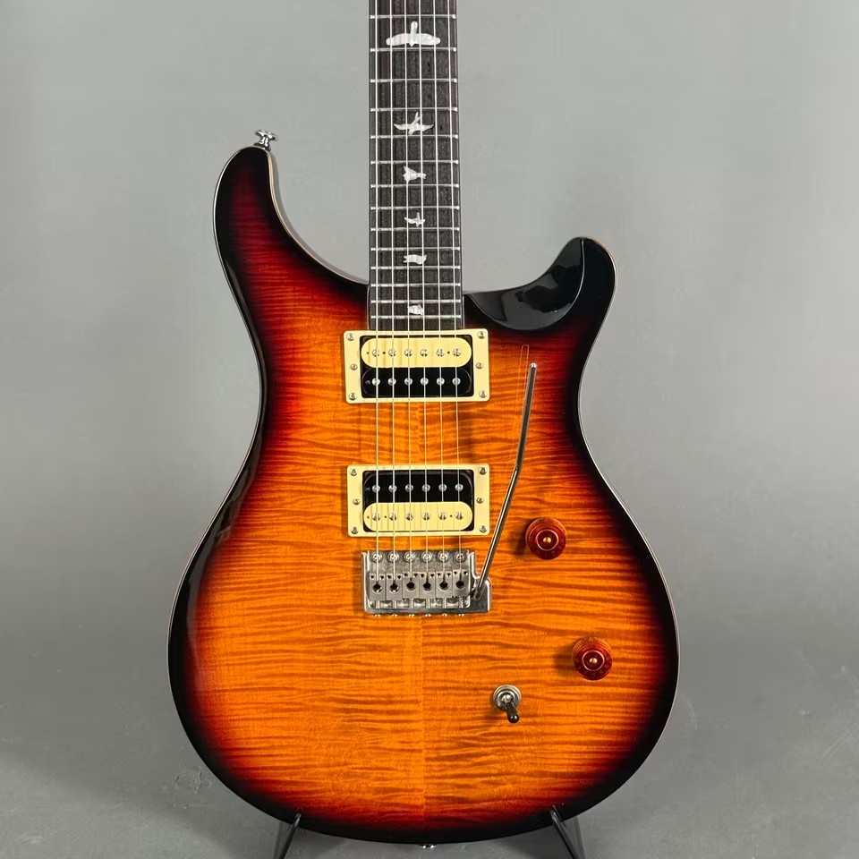 PRS SE Custom 24 Black Gold Burst Zebra PU Tremolo inkl. original Gigbag
